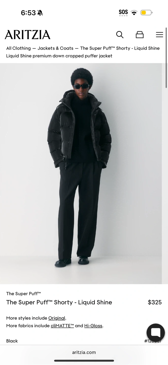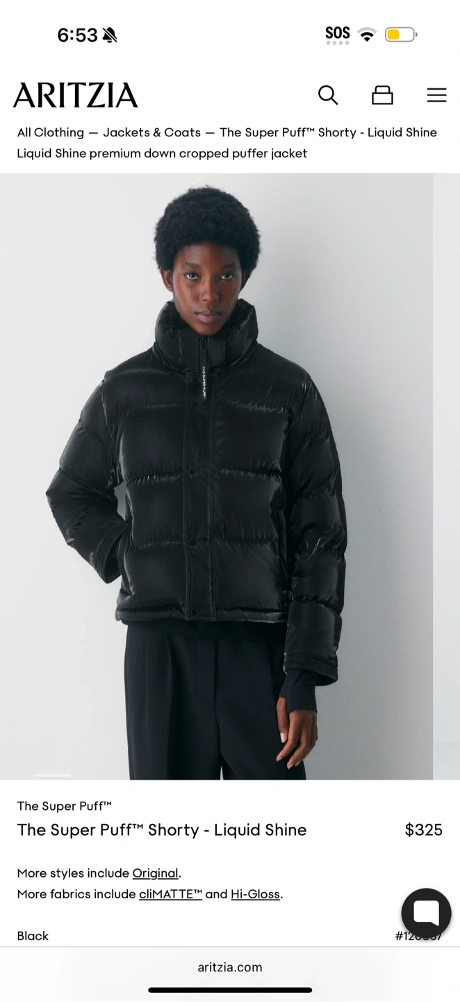 Selling an Aritzia The Super Puff Shorty in Liquid Shine Black! This stylish puffer jacket is perfect for staying warm and fashionable. Originally bought for $325 before tax
