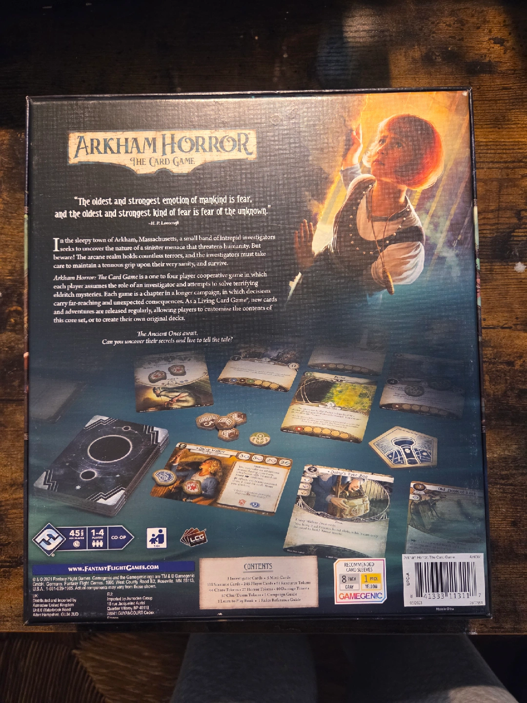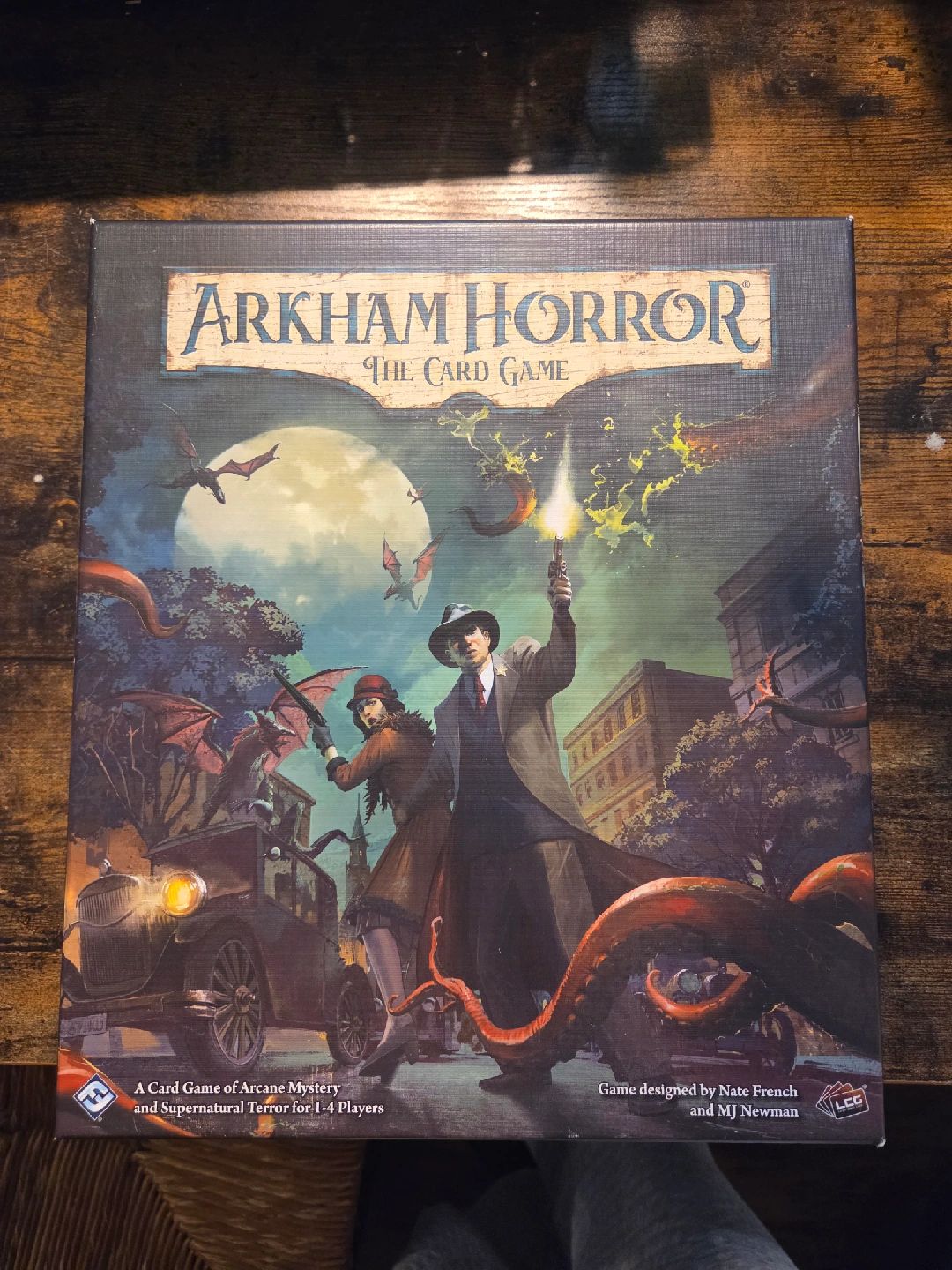 Selling Arkham Horror: The Card Game. It's a cooperative game of arcane mystery and supernatural terror for 1-4 players.