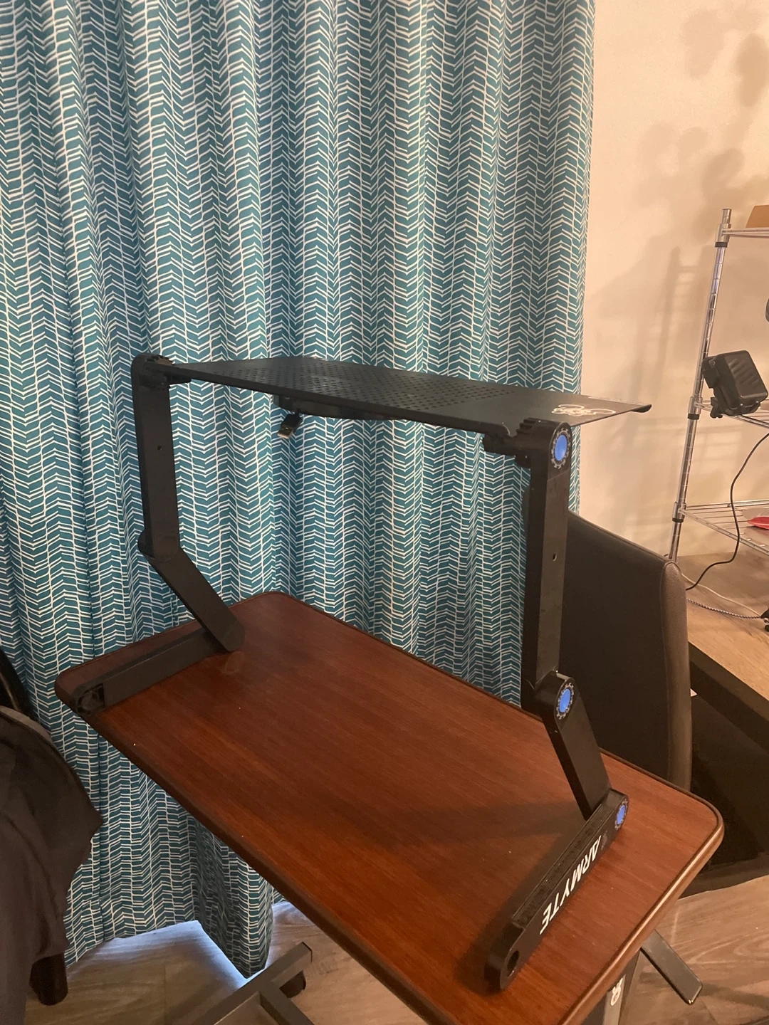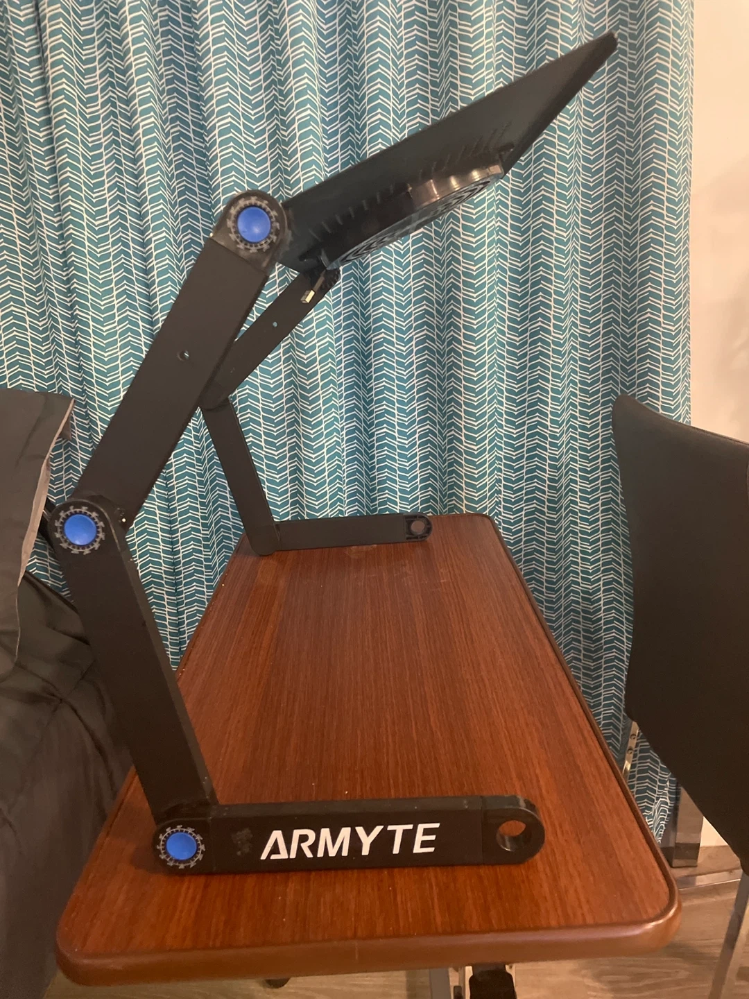 Selling an Armyte adjustable laptop stand desk. It's in great condition and perfect for working from home or on the go. It's lightweight and portable, making it easy to take with you wherever you need to work