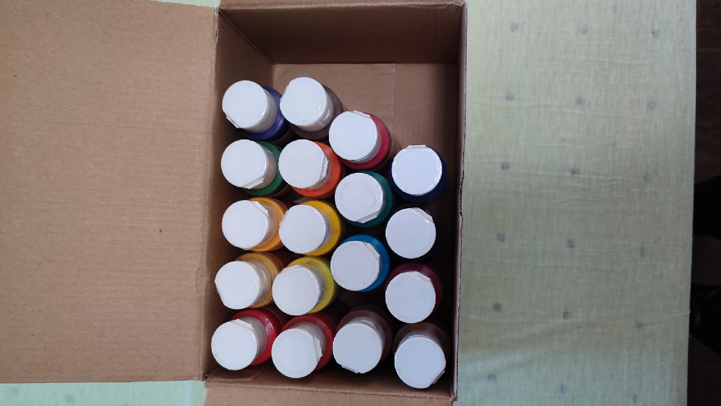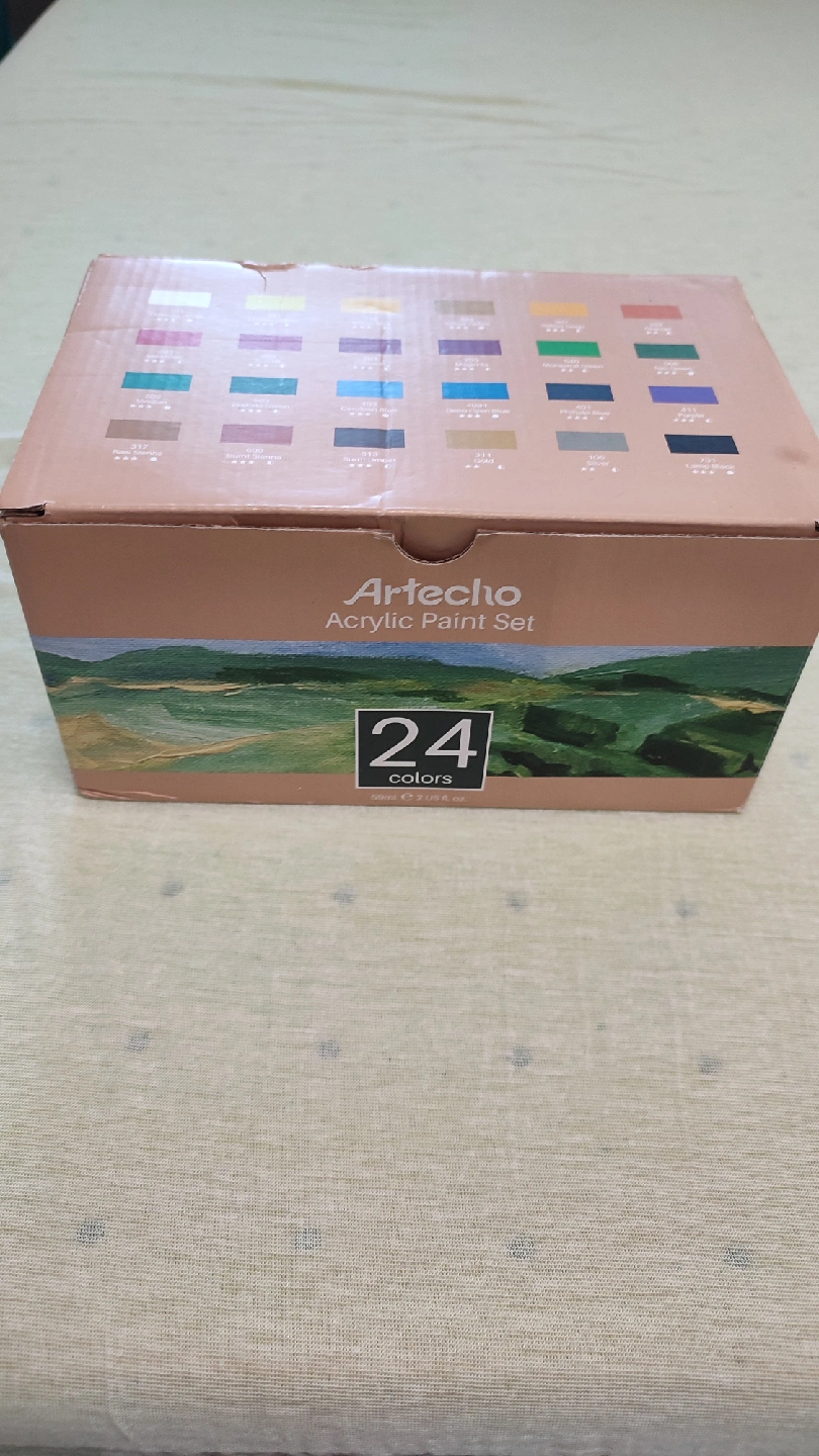 Selling a set of Artecho acrylic paints! This set includes 20 different colors, perfect for any art project. The box is included, so it's great for storage too.