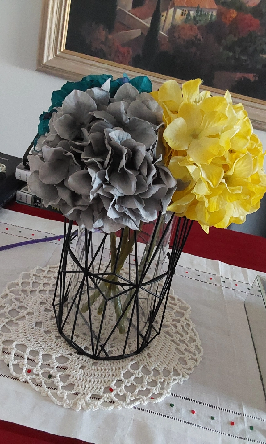 Show allArtistic Pristine Geometric Metal Vase with Glass /w hydrangea