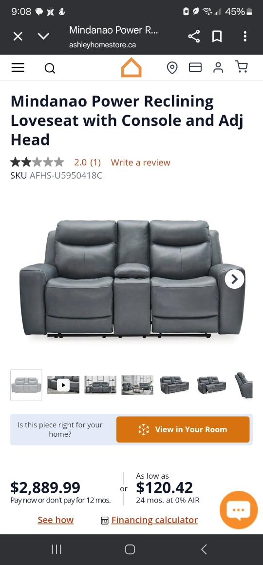 Selling a lovely Ashley Mindanao power reclining loveseat with console and adjustable headrest, along with a matching sofa. The set is in great condition and super comfy for movie nights or just relaxing!
