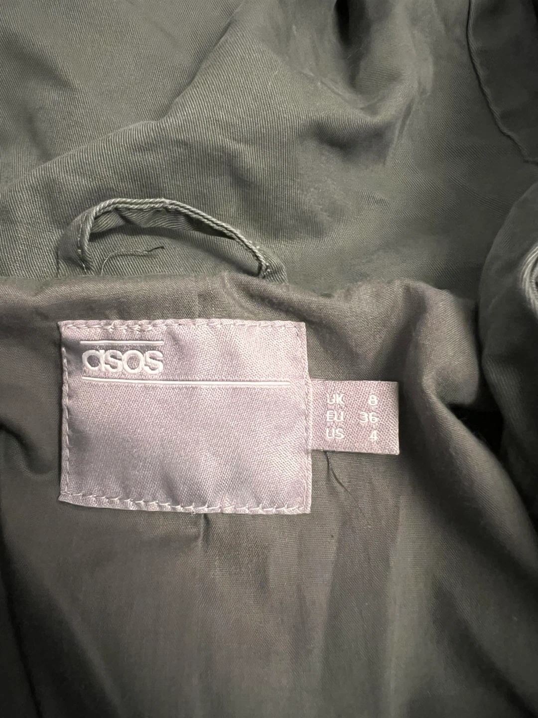 Selling an ASOS hooded jacket in a nice olive green colour. It's a women's size US 4. Perfect for layering! Wrinkly but no damage and like new condition