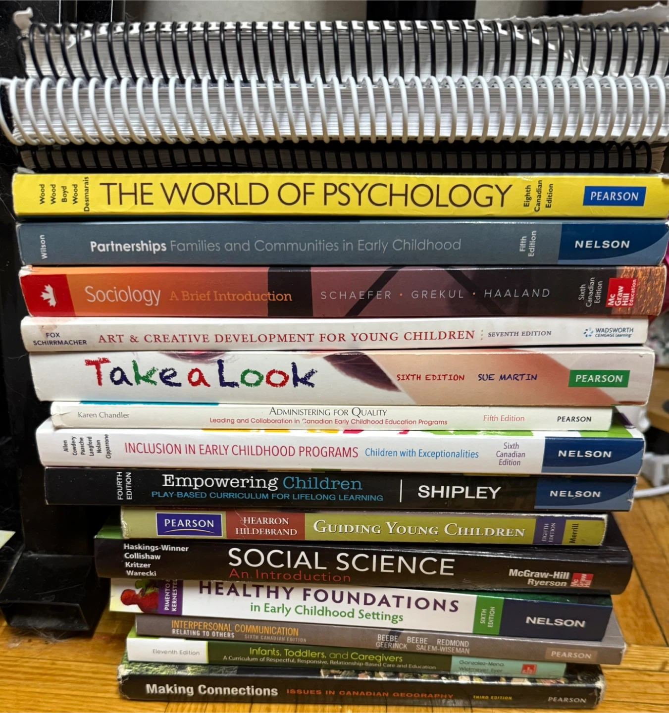 Selling a collection of textbooks related to early childhood education and psychology. Titles include "The World of Psychology," "Partnerships Families and Communities in Early Childhood," "Sociology A Brief Introduction," and more! All in good condition and perfect for students or educators in the field
