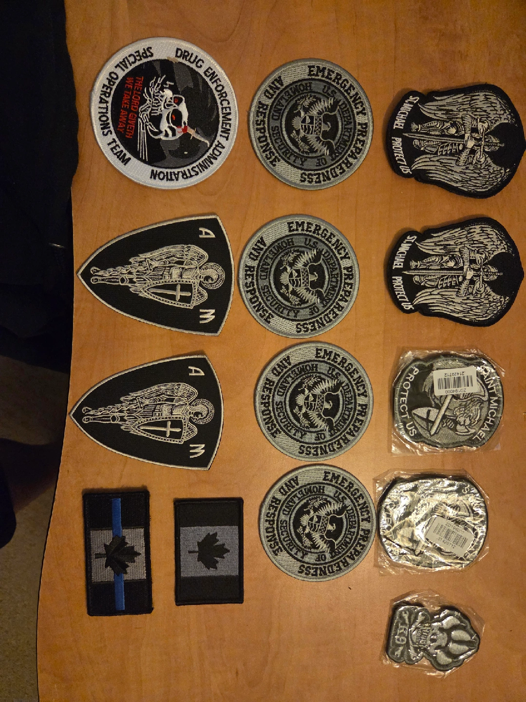 Selling a collection of various emergency preparedness patches. They feature designs like Saint Michael, emergency response, and special operations teams. Great for collectors or anyone interested in emergency services!