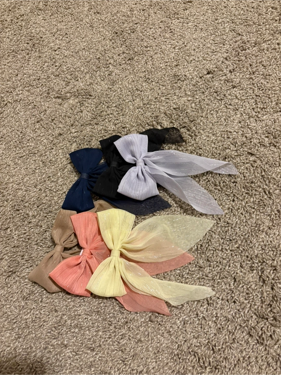 A collection of adorable hair bows in various colours and styles! Perfect for adding a touch of cuteness to any outfit. They're in great condition and ready for a new home
