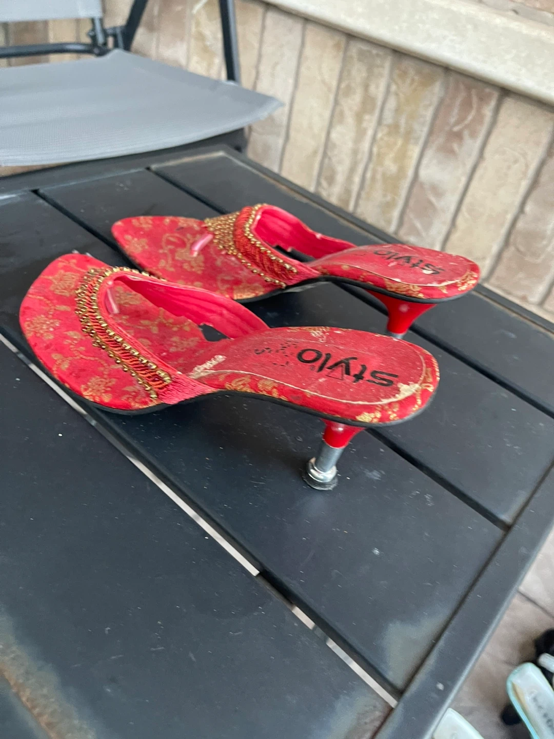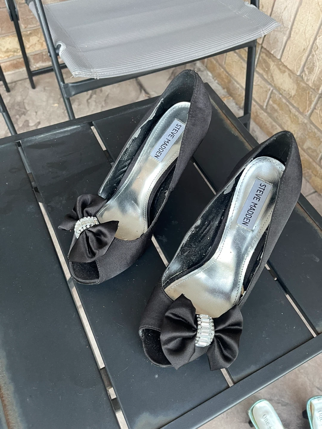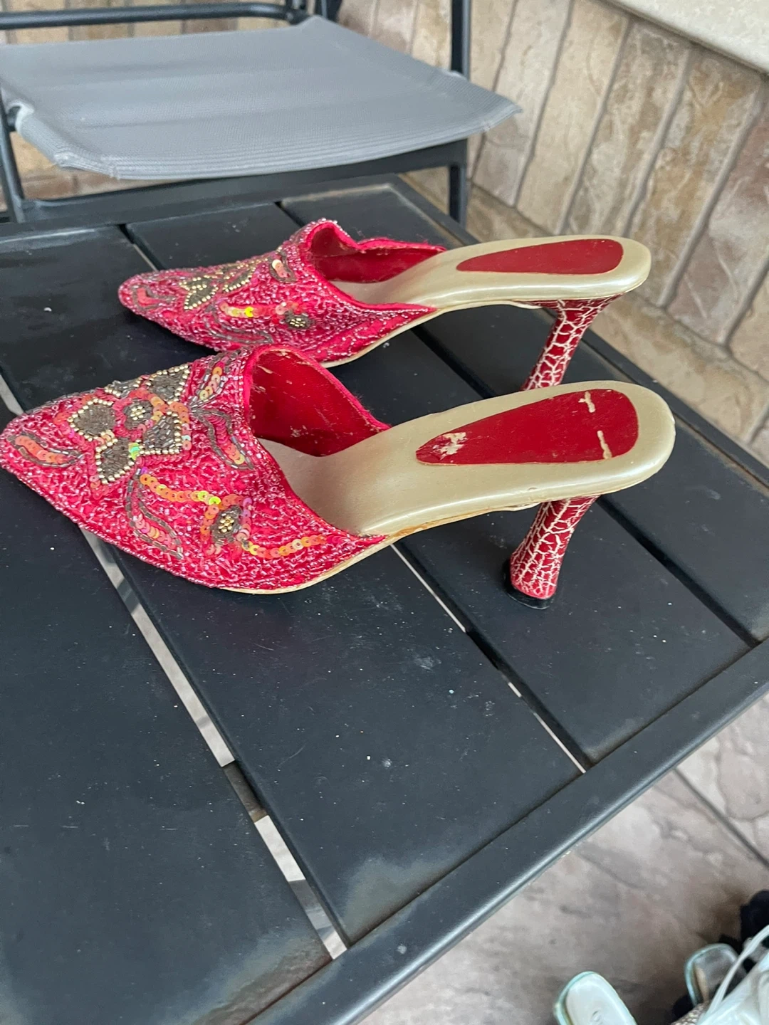 Selling a collection of assorted heels. Styles include red beaded mules, black Steve Madden heels with bows, and white open-toe heels. All are in used condition and ready for a new home!