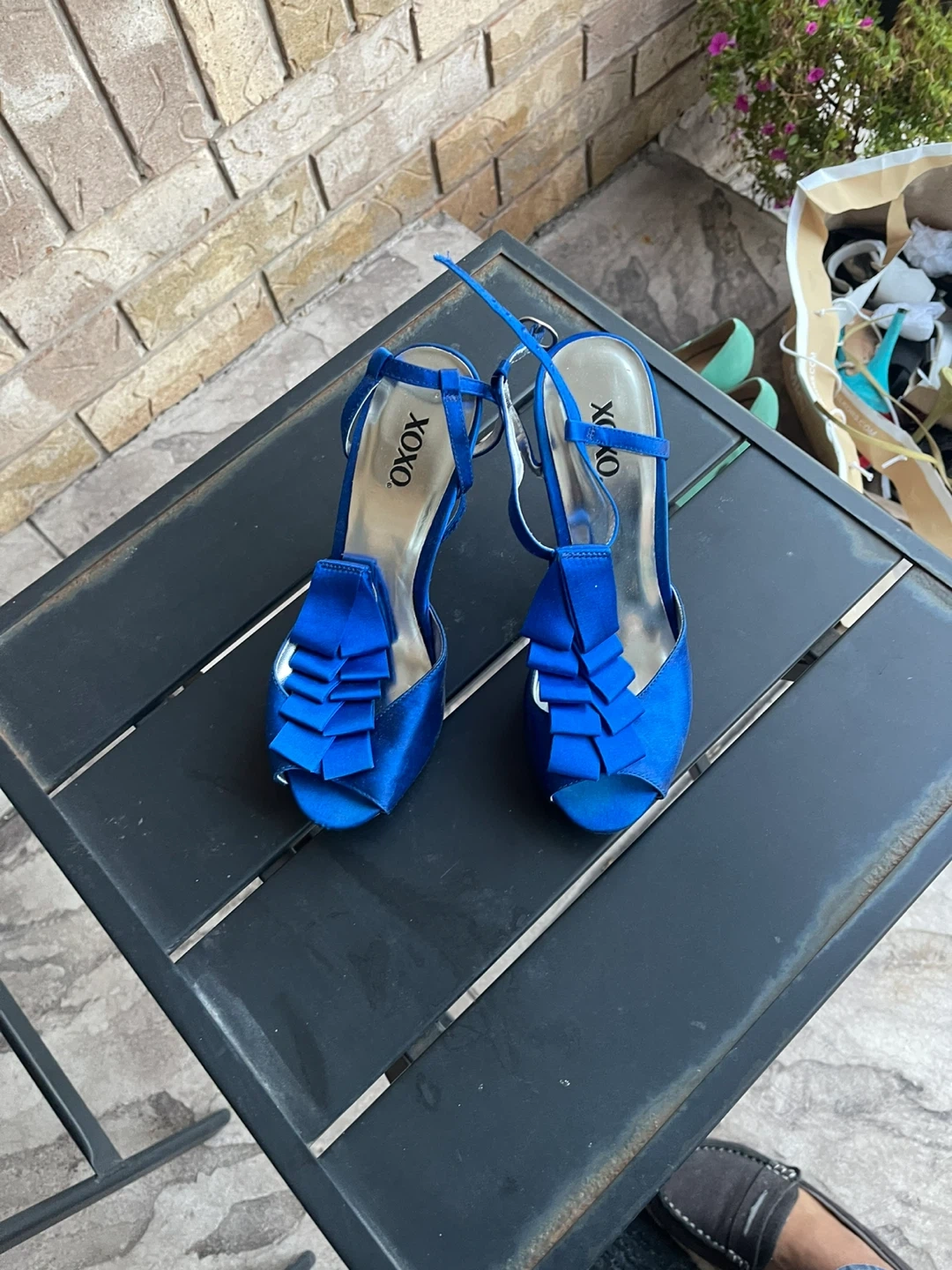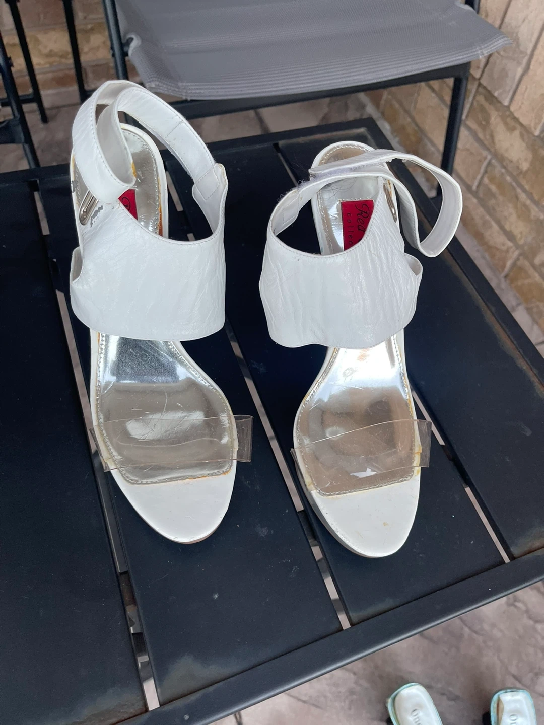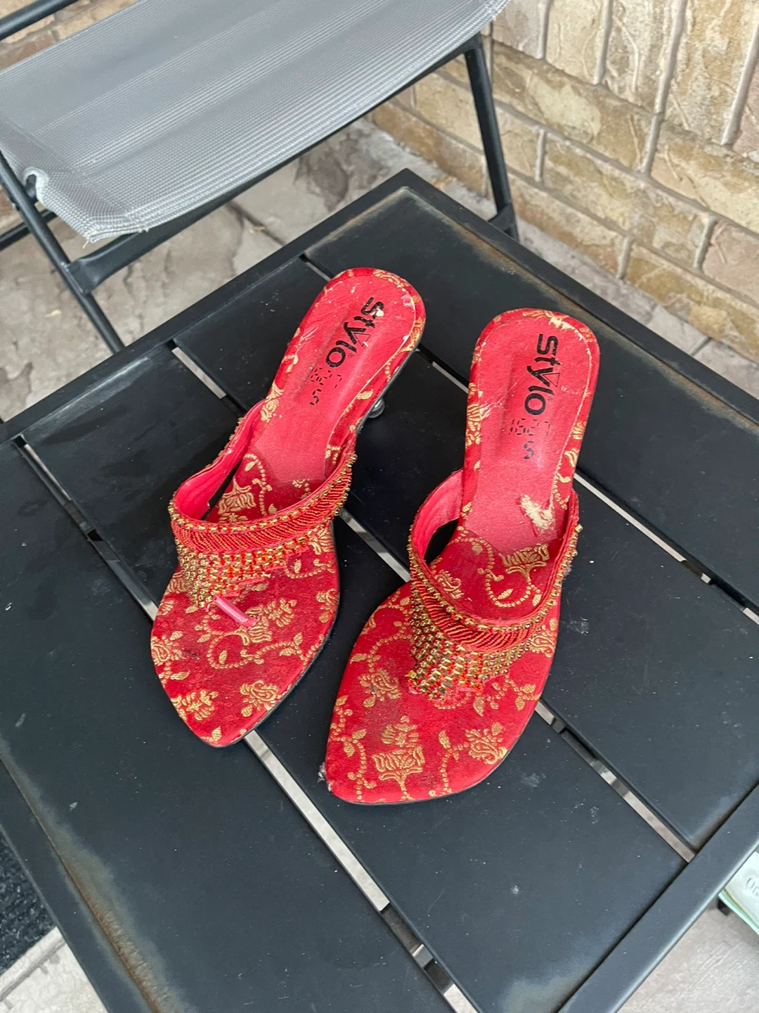 Selling a collection of assorted heels. Styles include red beaded mules, black Steve Madden heels with bows, and white open-toe heels. All are in used condition and ready for a new home!