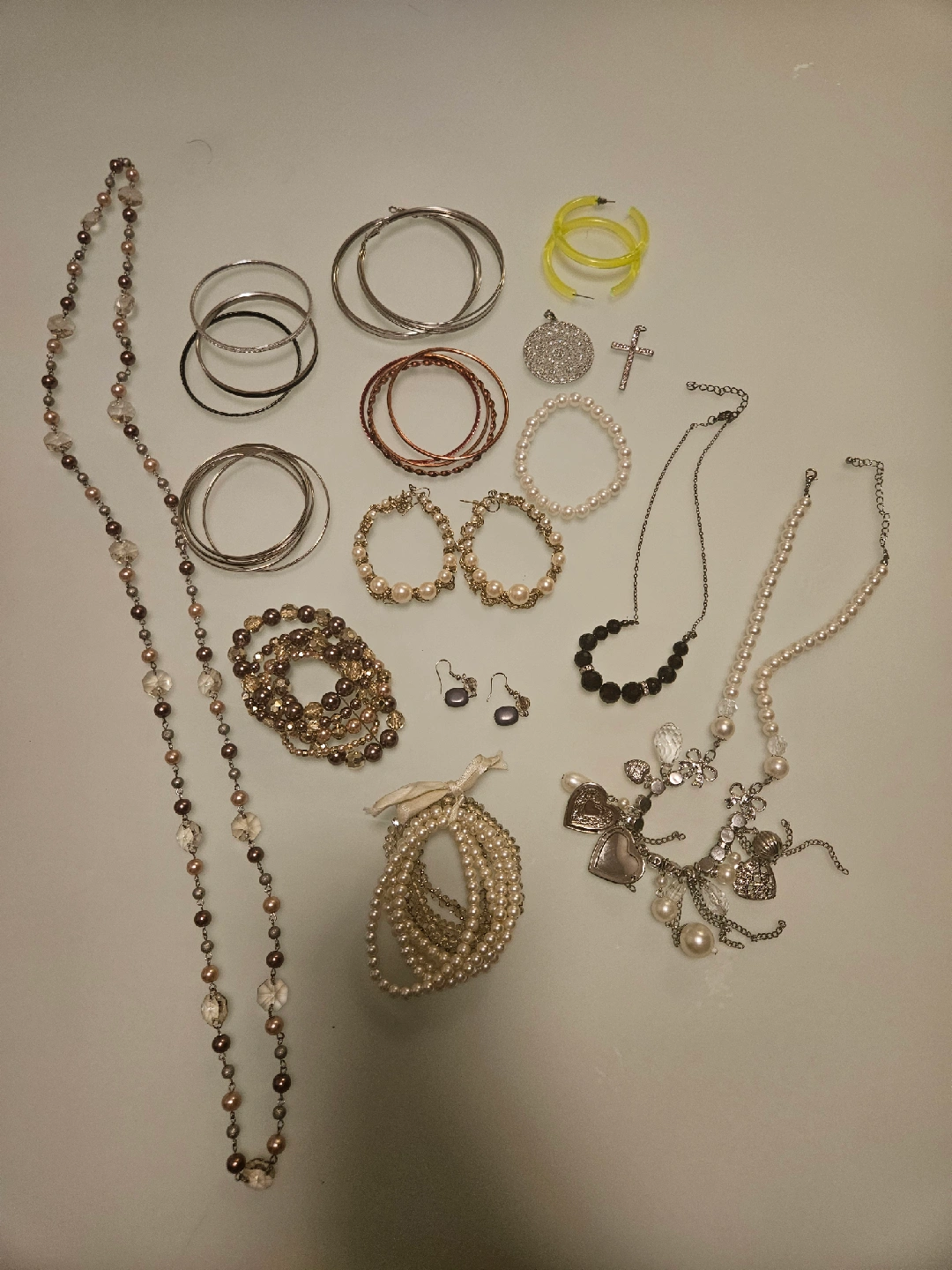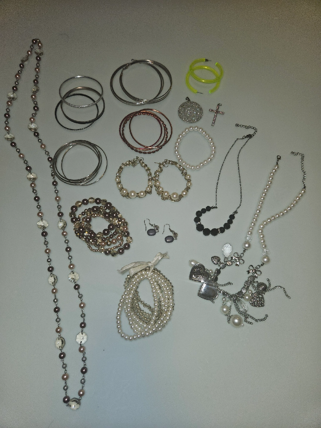 Selling a mixed lot of jewellery. Includes necklaces, bracelets, earrings and more! All in good condition and ready to accessorize your outfits. Perfect for adding some sparkle to your wardrobe