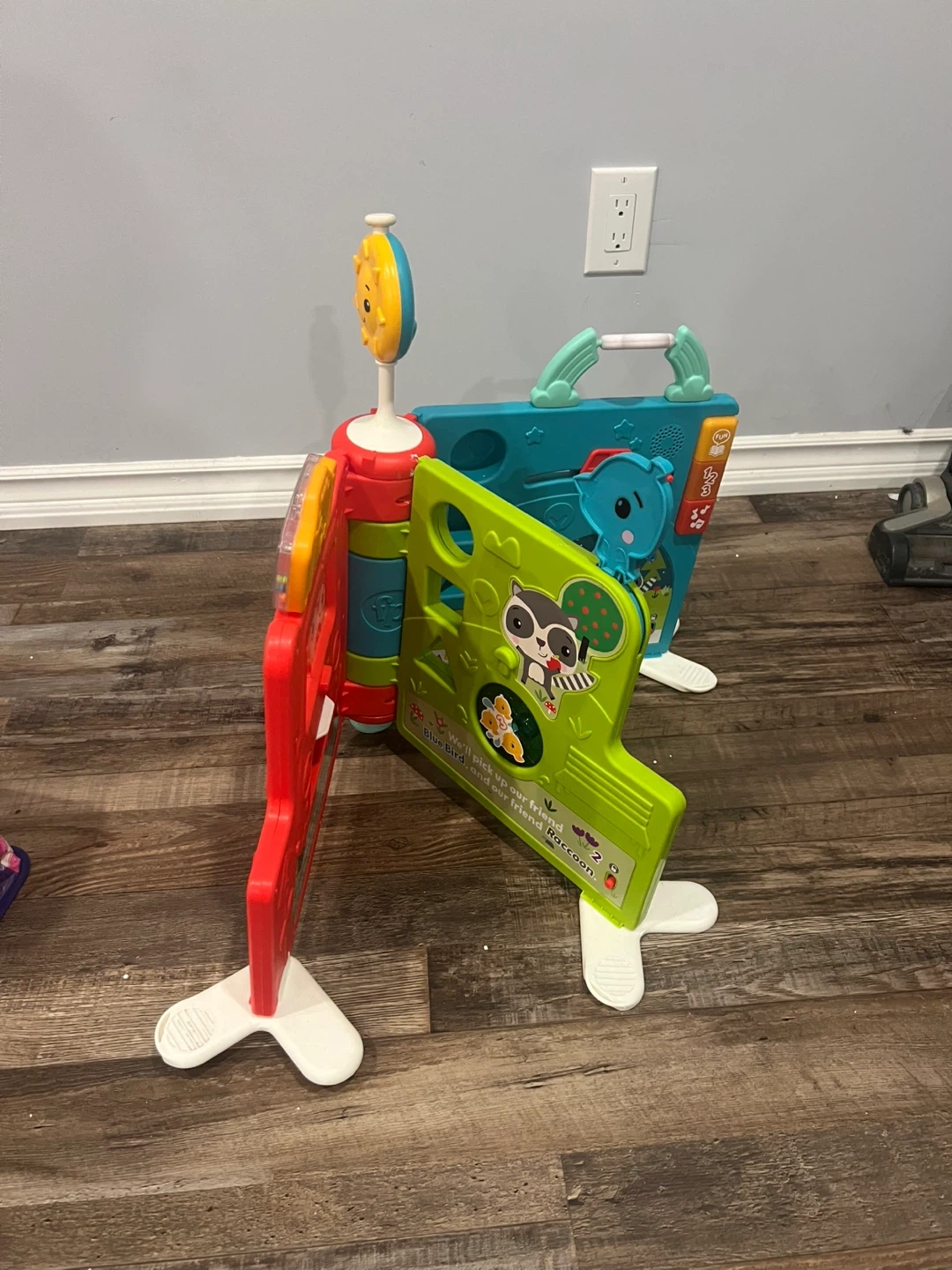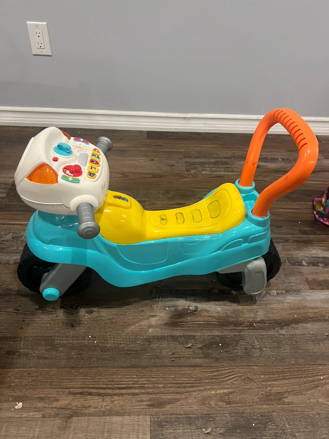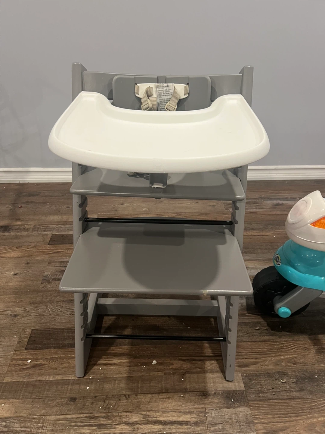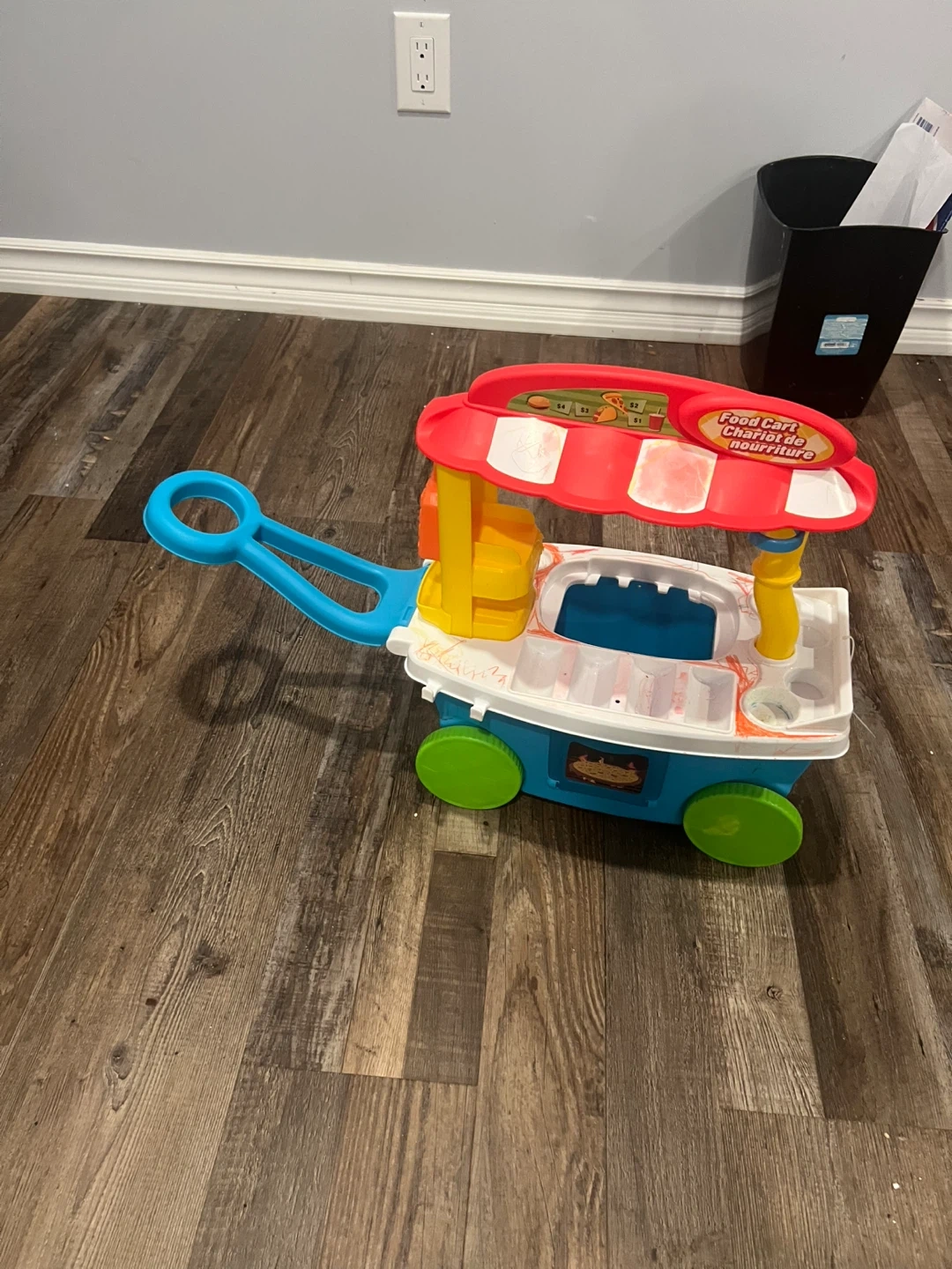 Selling a collection of assorted kids toys. Includes a Stokke Tripp Trapp high chair, a ride-on toy, Mega Bloks, an activity centre, and a toy food cart. Great for toddlers and young children!