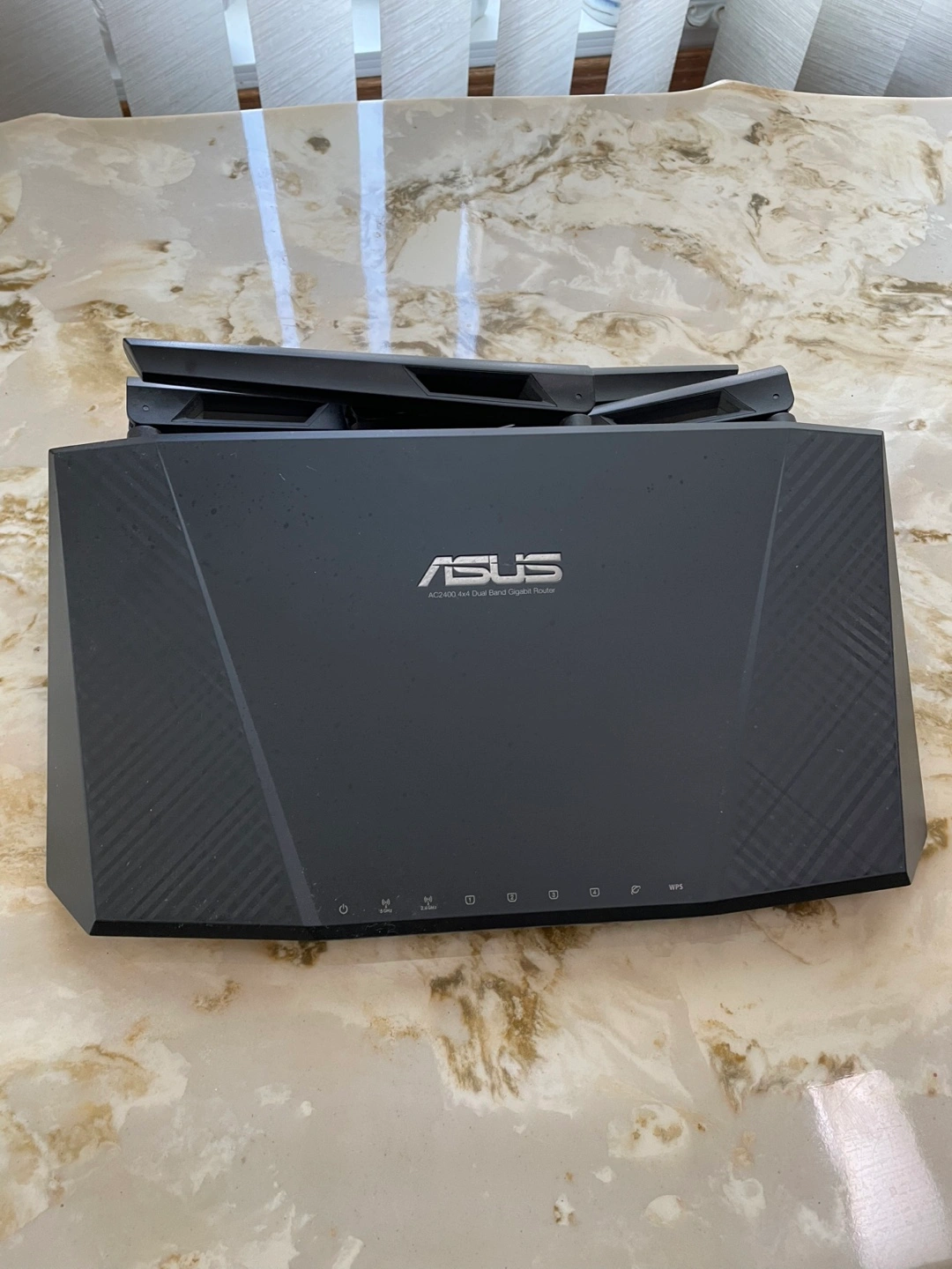 Selling an ASUS RT-AC87U AC2400 Dual Band Gigabit Router. It's in excellent condition and comes with the original box. Includes the router and the power adapter. This router delivers up to 1734 Mbps for smoother 4K UHD video streaming and online gaming, plus up to 600 Mbps for web surfing. It's perfect for creating a high-performance home network cash only please no e-transfers thankyou