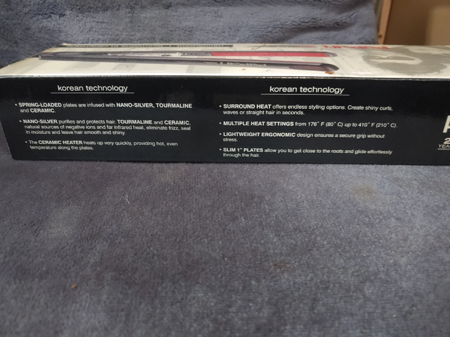 Selling an Avanti hair straightener in its original box! It features nano-silver, tourmaline, and ceramic technology. The spring-loaded plates are infused with these materials to purify and protect your hair, eliminating frizz and leaving it moisturized and shiny. It also has multiple heat settings, from 176°F (80°C) to 410°F (210°C), and a lightweight ergonomic design