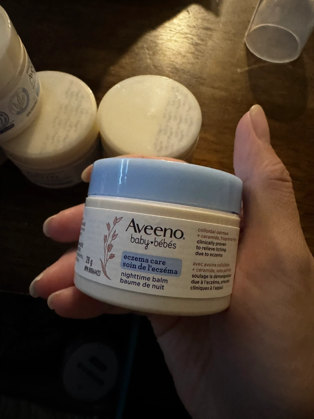 I'm selling Aveeno Baby Eczema Care Nighttime Balm. It's a colloidal oatmeal skin protectant clinically proven to relieve itching due to eczema. It comes in a 28 g container, perfect for your little one's sensitive skin $5 each