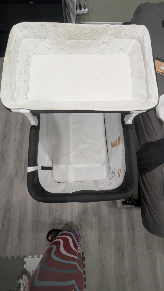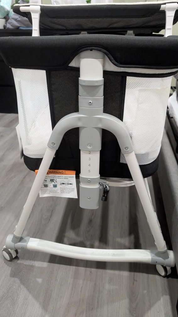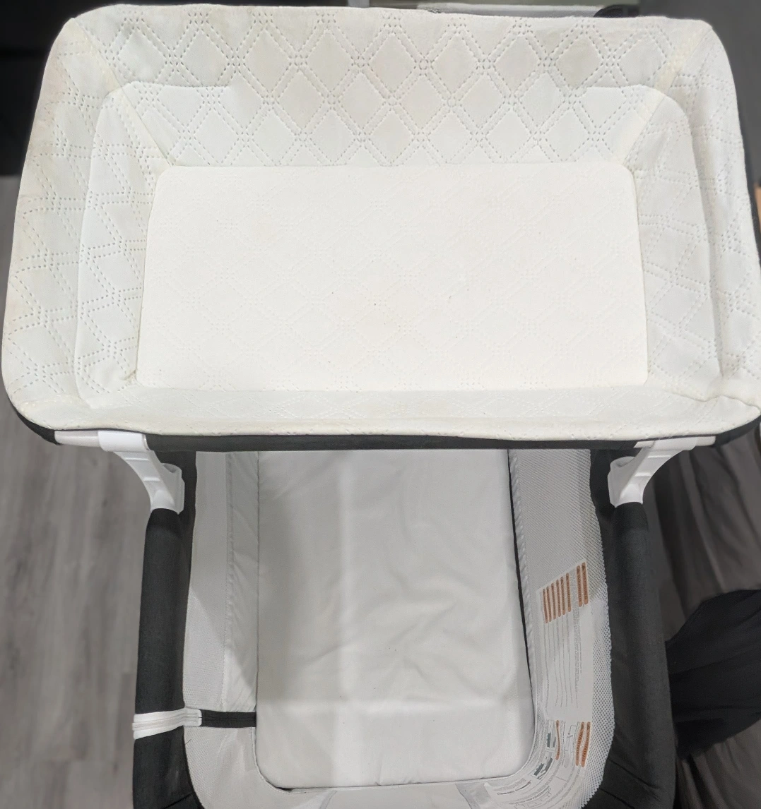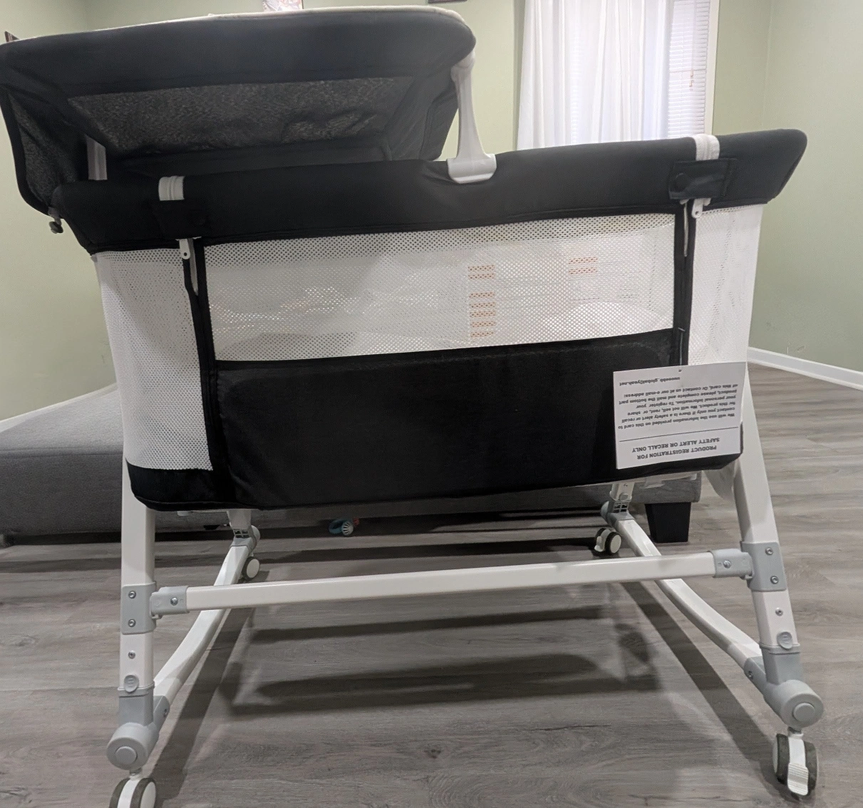 Selling a very gently used baby bassinet! It features adjustable height settings to easily match your bed height. The bassinet is black and white. Perfect for newborns/infants!