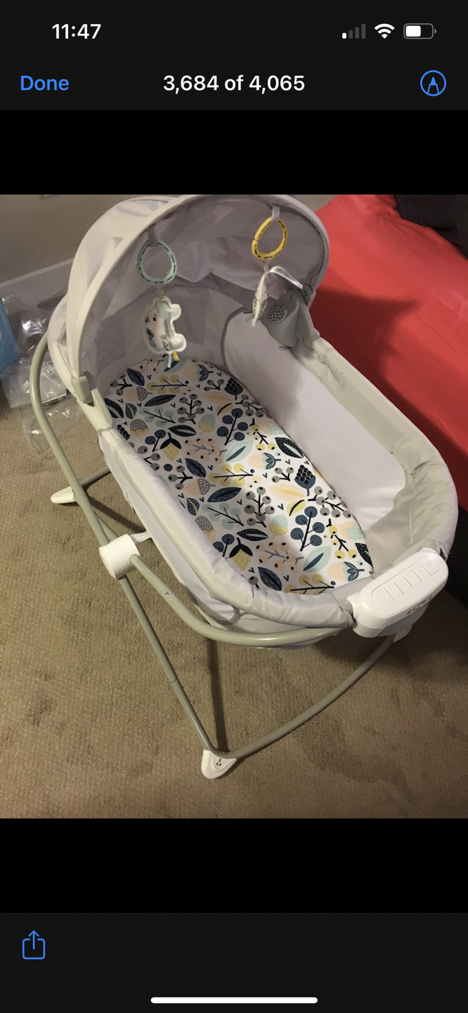 Fisher-Price Soothing View Projection Bassinet It has music and vibration and the best part is that it’s foldable for east storage.