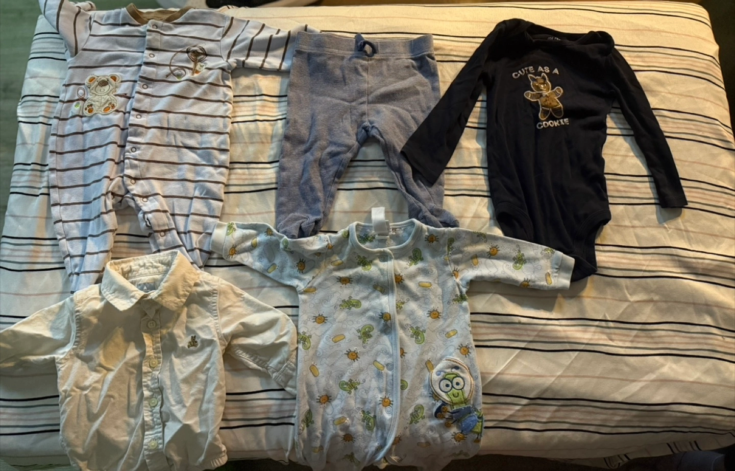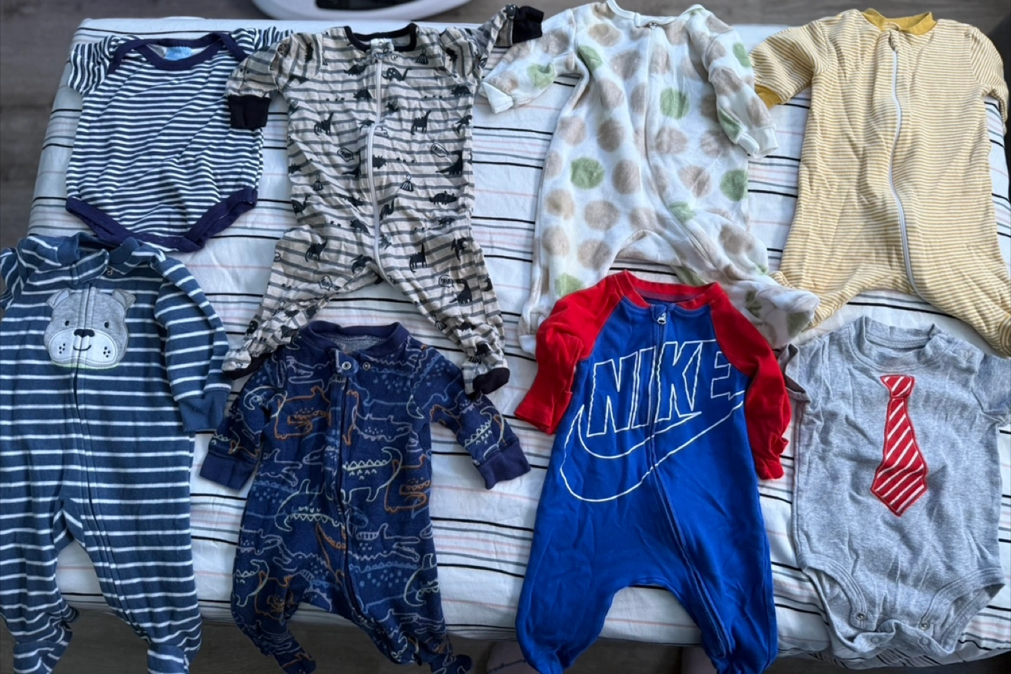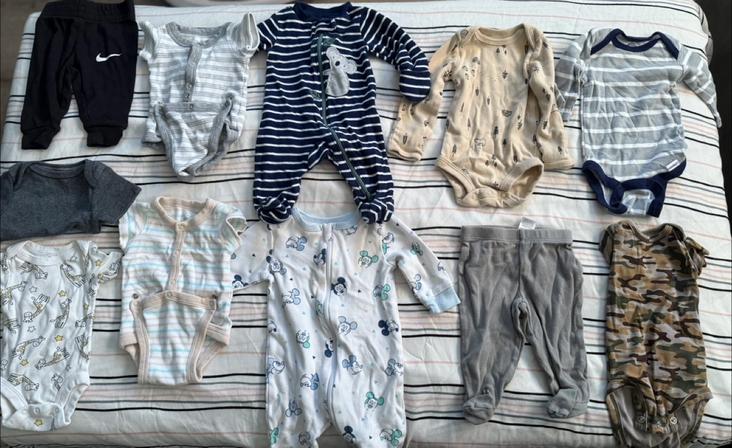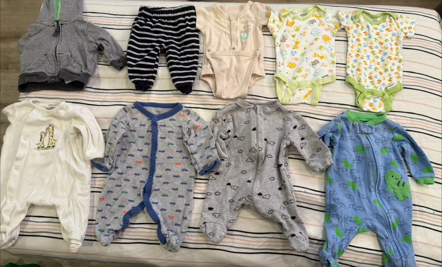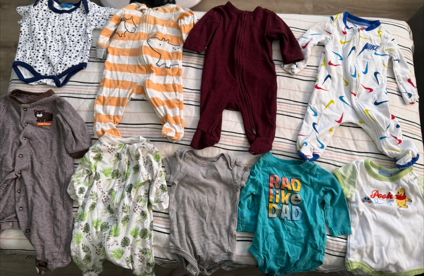 Selling a big bundle of baby clothes! There's a variety of styles, including onesies, sleepers, pants, and even some hats and socks. Perfect for a growing little one! 1$ a piece!!