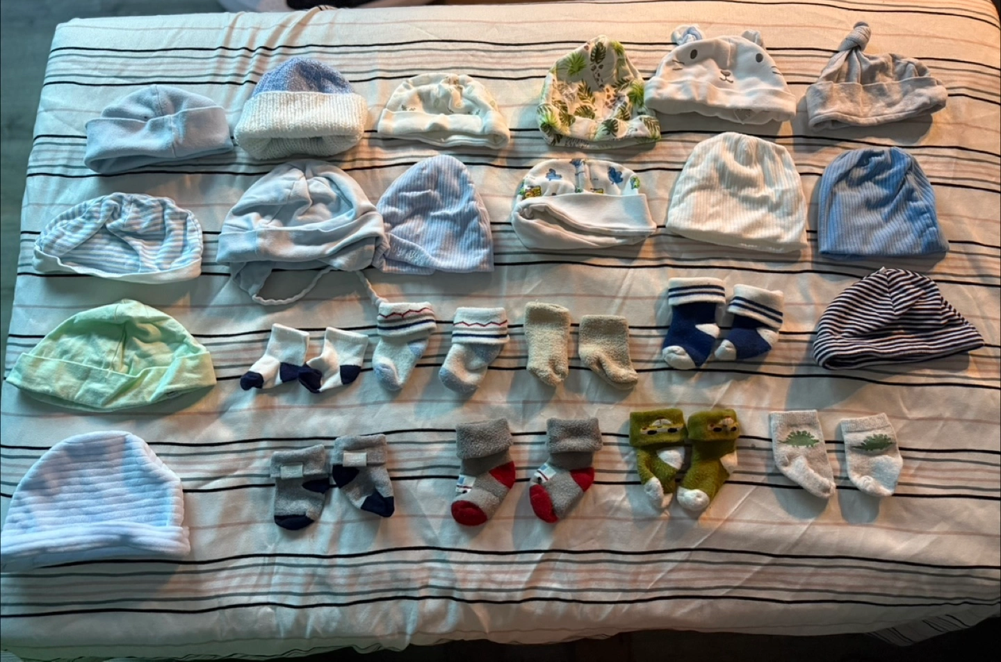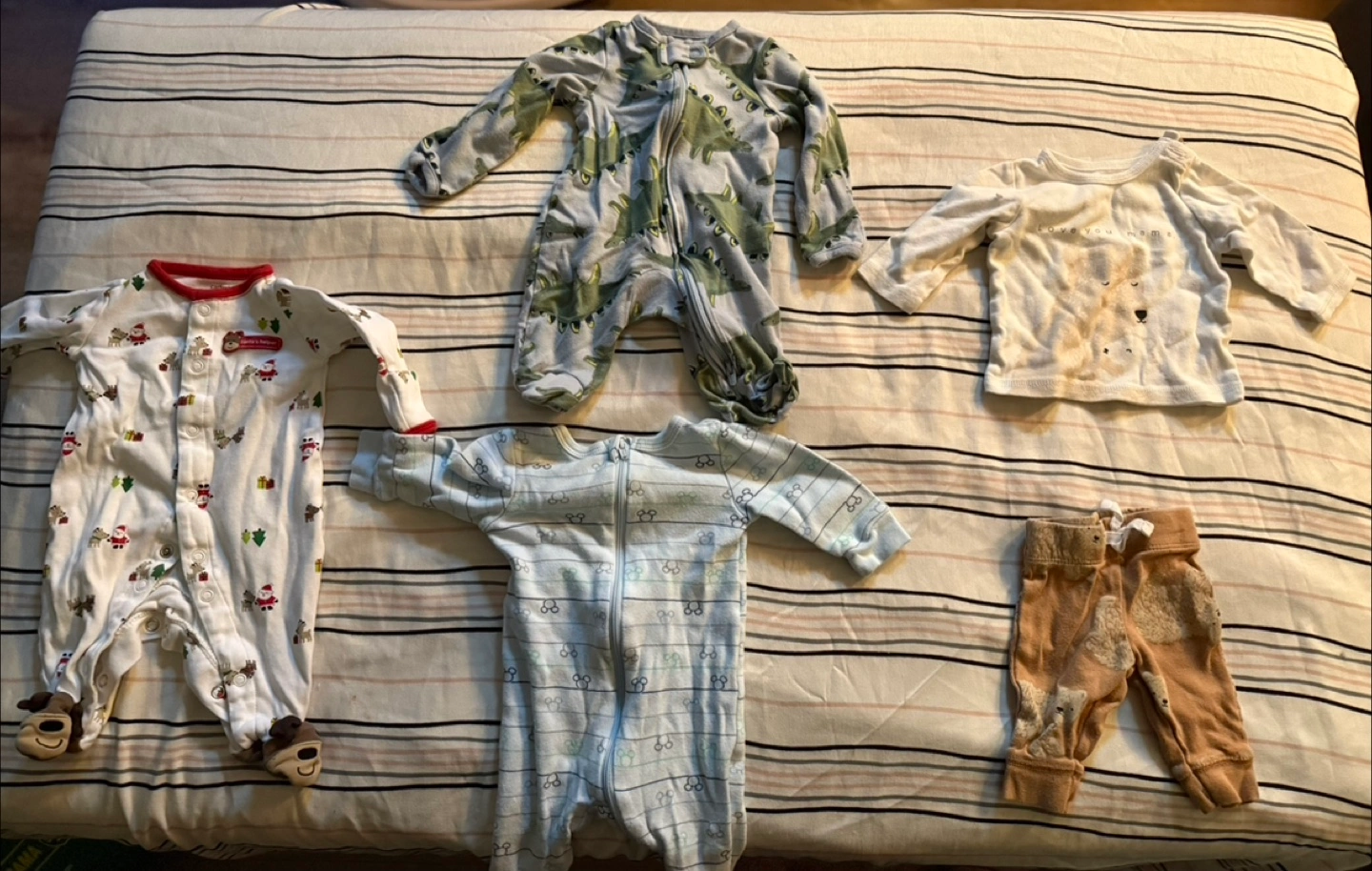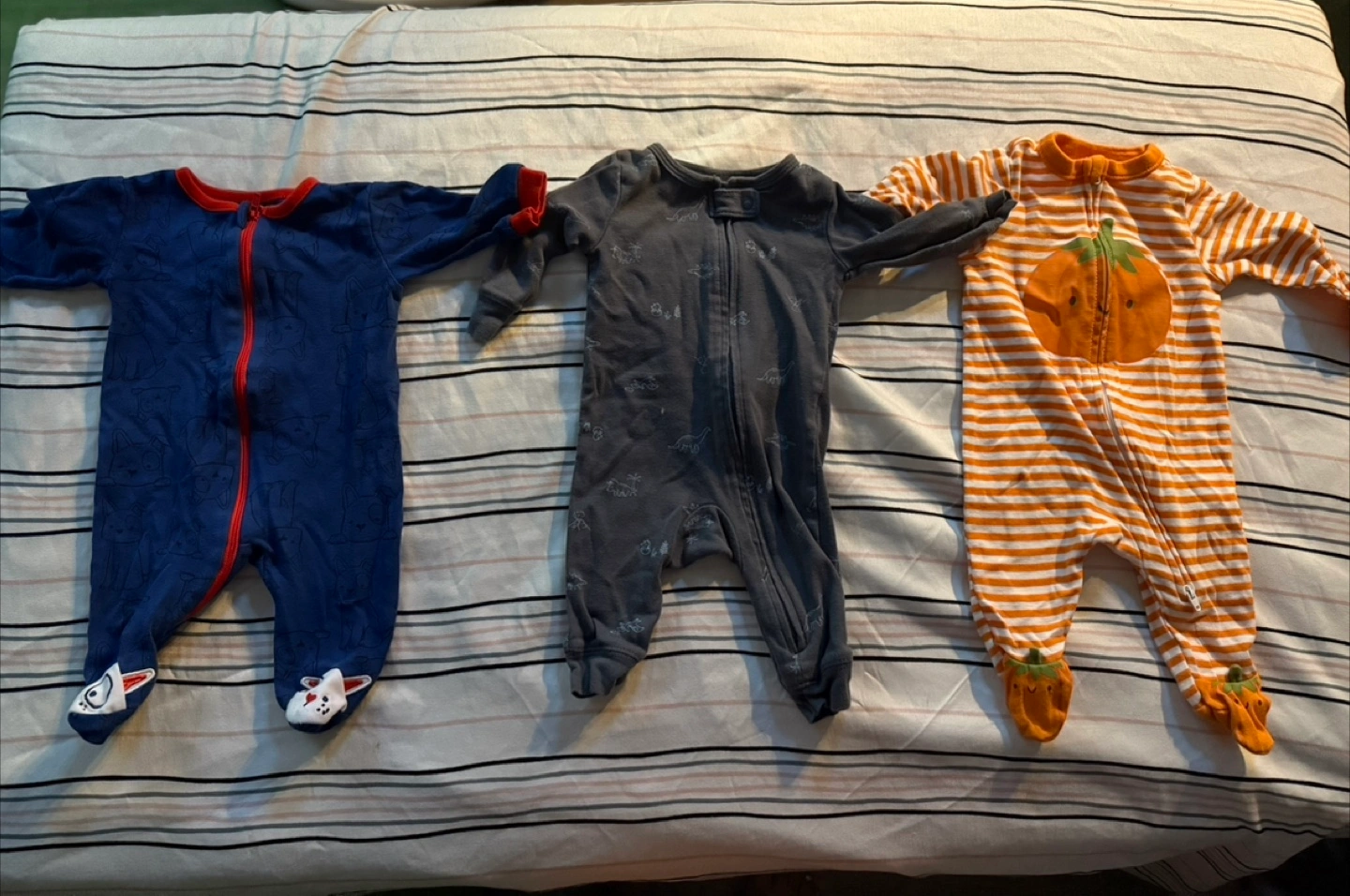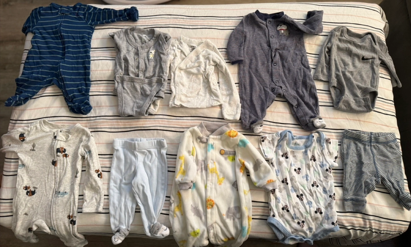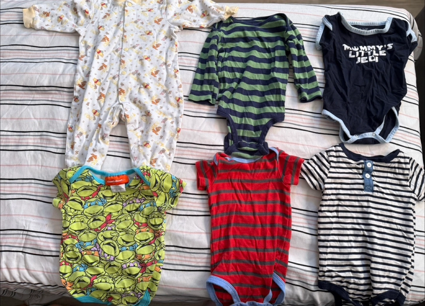 Selling a big bundle of baby clothes! There's a variety of styles, including onesies, sleepers, pants, and even some hats and socks. Perfect for a growing little one! 1$ a piece!!