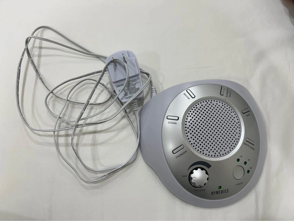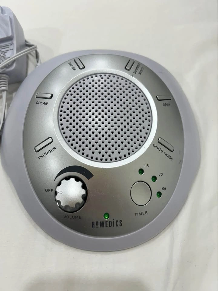 Homedics White Noise Sound Machine, Ambient Sleep Aid, Travel Friendly, 6 Relaxing Nature Sounds, Portable Soothing Relaxation Device for Home, Office, Nursery, Baby, Adults, with Timer. In perfect condition, selling as I don’t need it anymore. Features: Six digitally recorded, calming sounds, including white noise, thunder, ocean, rain, summer night, and brook. Compact, and portable. Set the auto-off timer for 15, 30, or 60 minutes, or let it run all night Power it using an AC adaptor (comes with it) or using batteries (does not come with batteries).