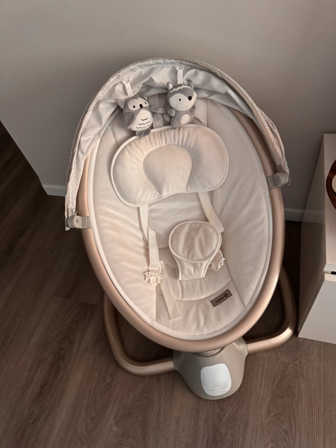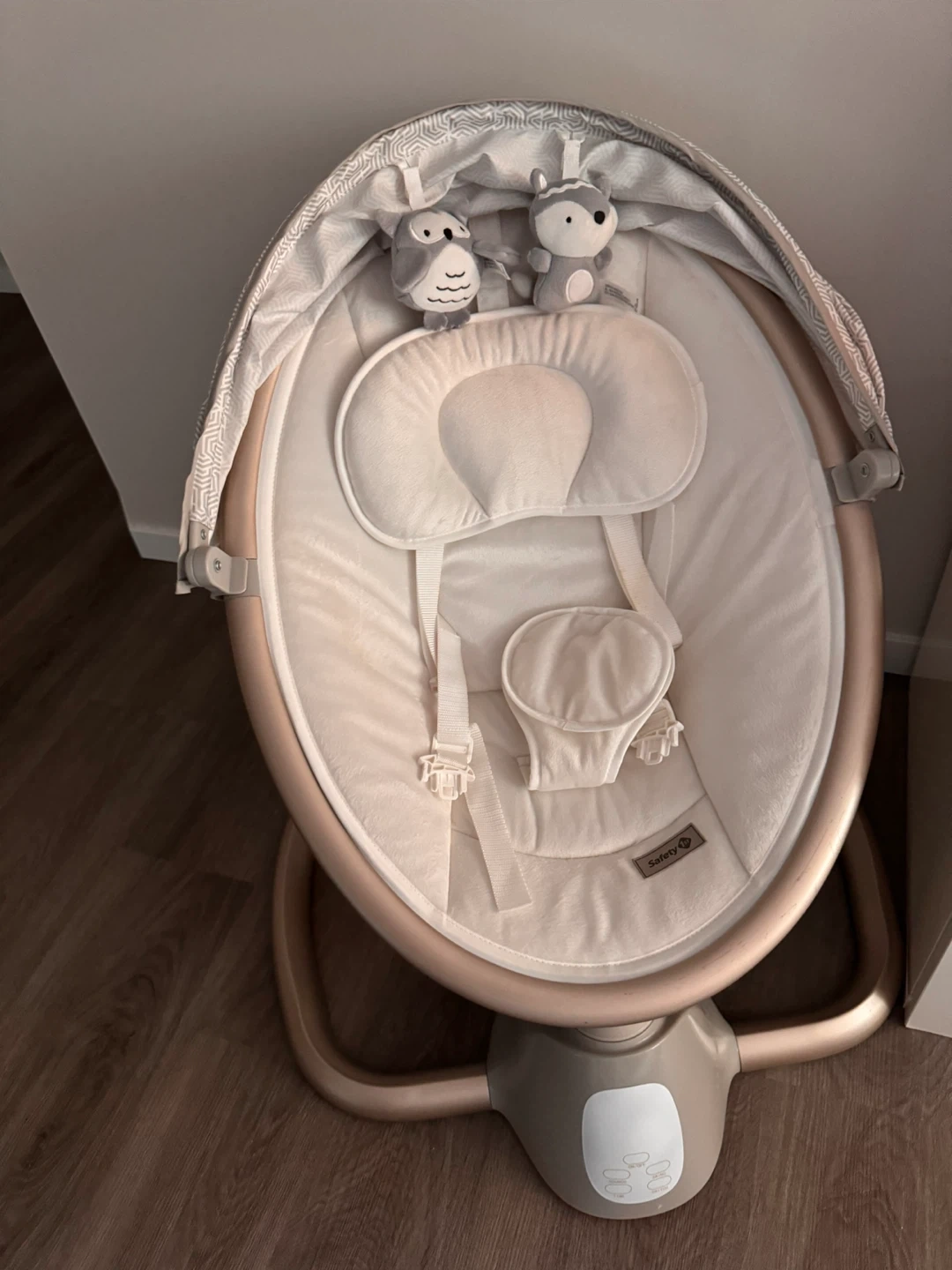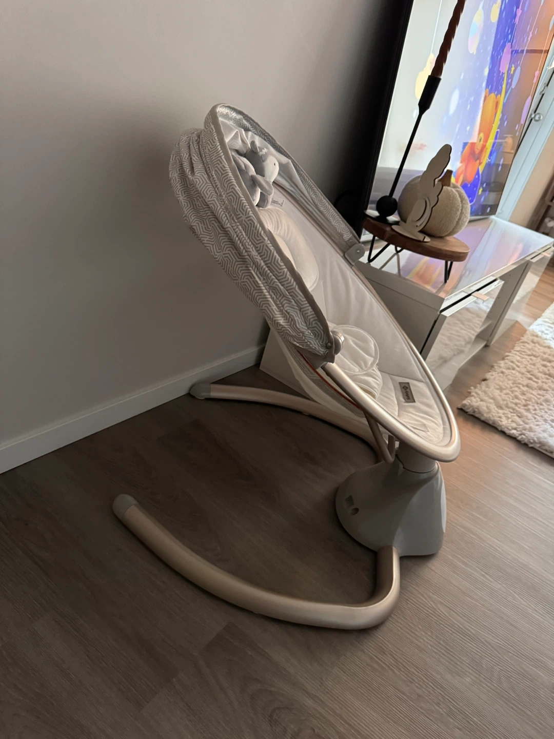 70$ pickup Sherwood park, the swing is Bluetooth and comes with remote and plug all ready to be used. It has 5 diffrent speed modes and can play music through iPhone through the swings Bluetooth