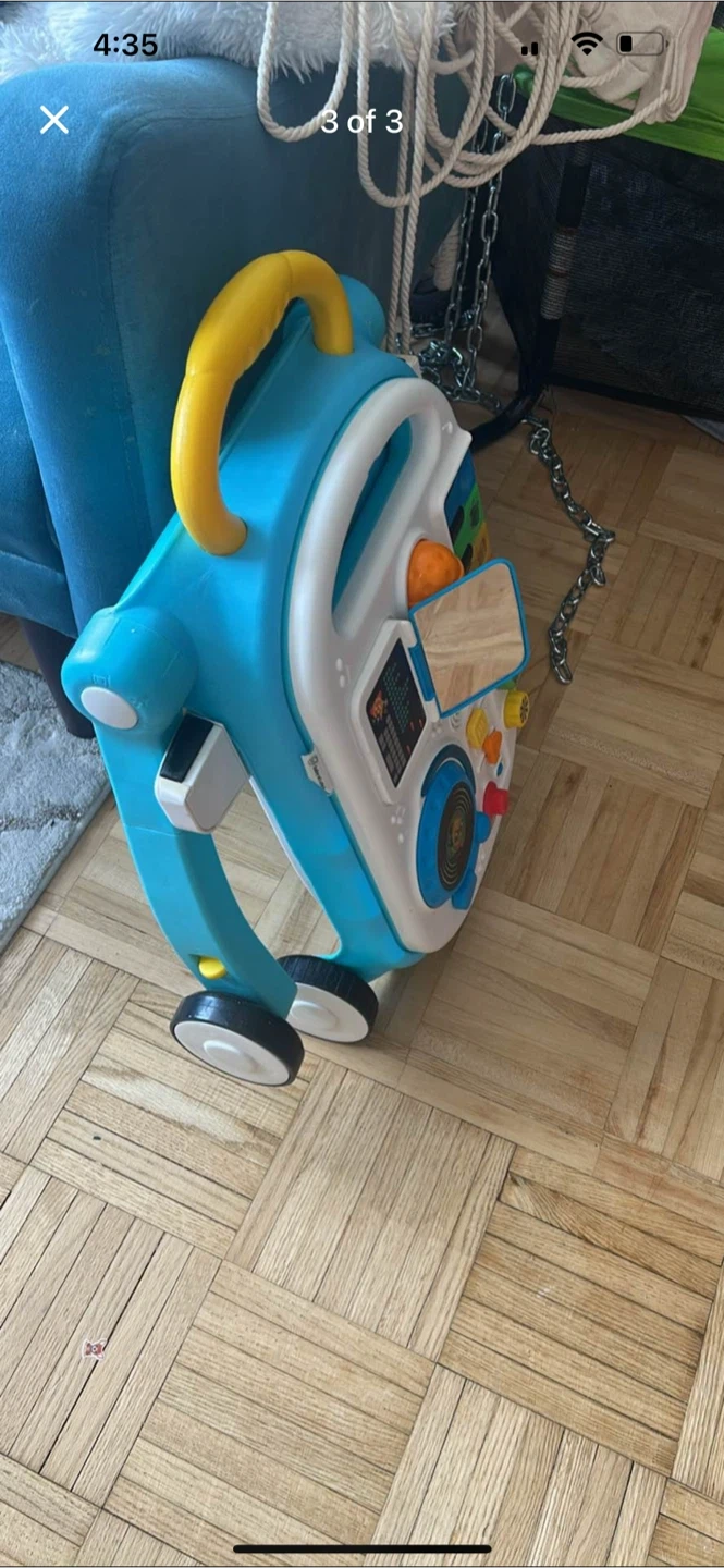 Looking to sell this baby walker activity center. It's in great condition and ready for a new home. It has lots of fun activities to keep your little one entertained, and the dj station can be removed to be a kids table and the wheels have locks when in stationary mode!