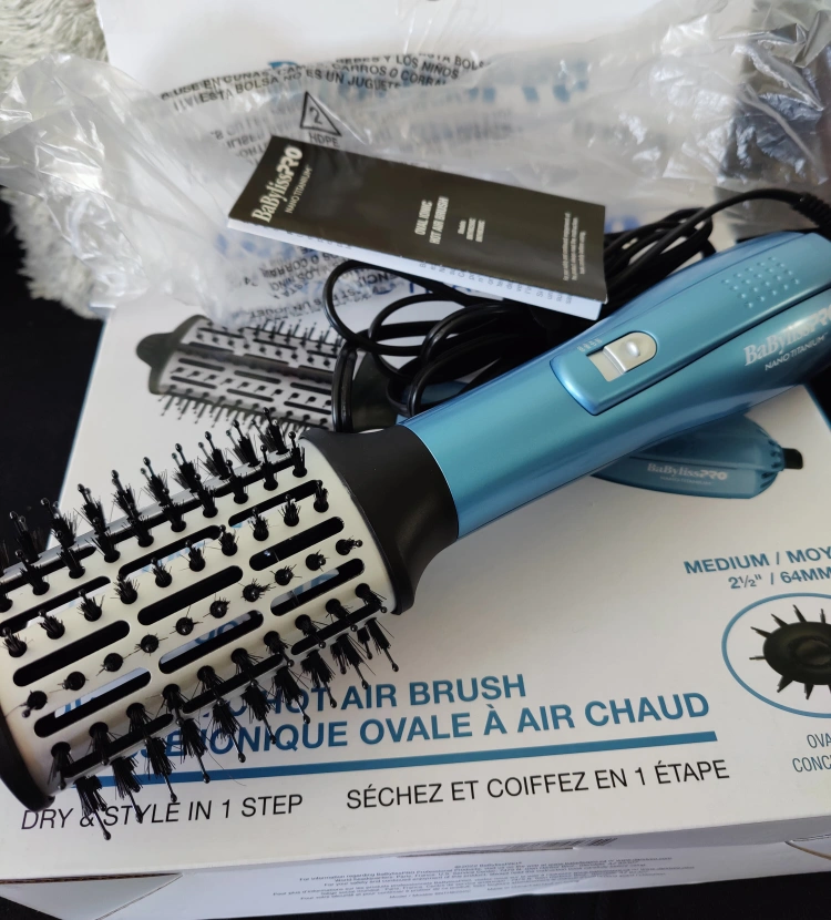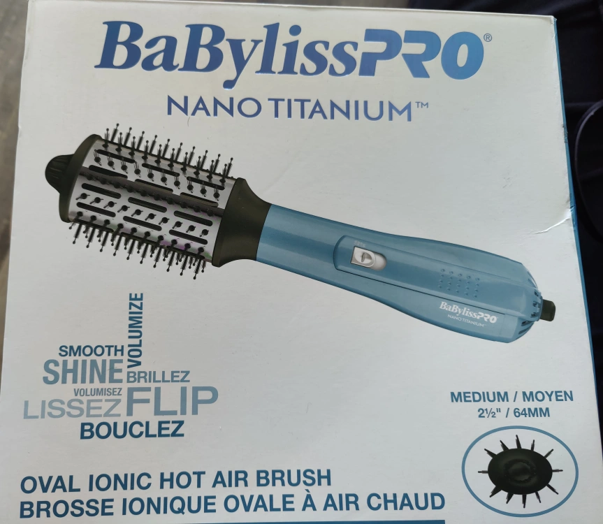 I'm selling a BaBylissPRO Nano Titanium Oval Ionic Hot Air Brush in excellent condition! It's a medium size, 2 1/2" / 64mm. It helps to smooth, shine, volumize, flip, and curl your hair. It's an oval ionic hot air brush for dry and style in one step. Comes with the original box and instructions