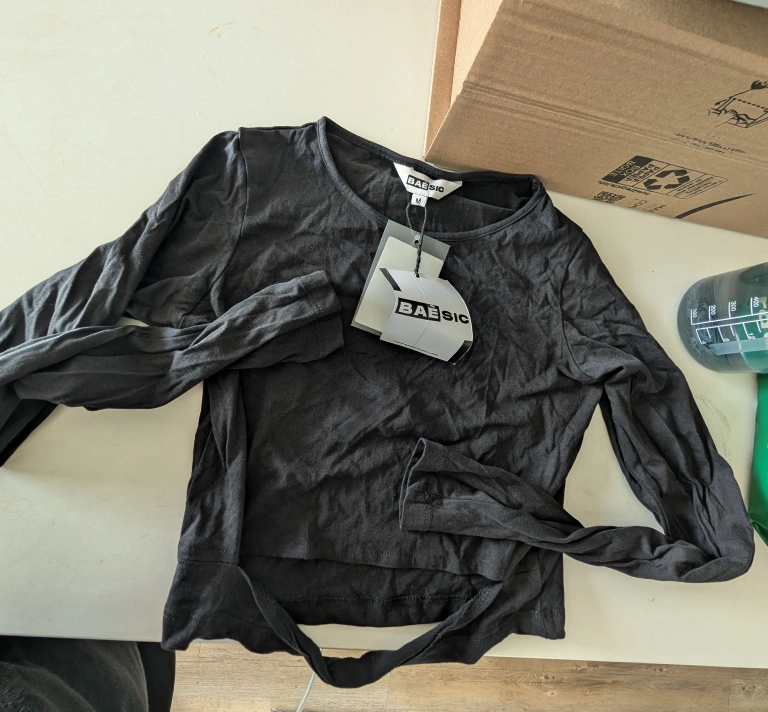 Selling a BAESIC long sleeve top in black, size medium. It's in great condition and still has the tags attached!