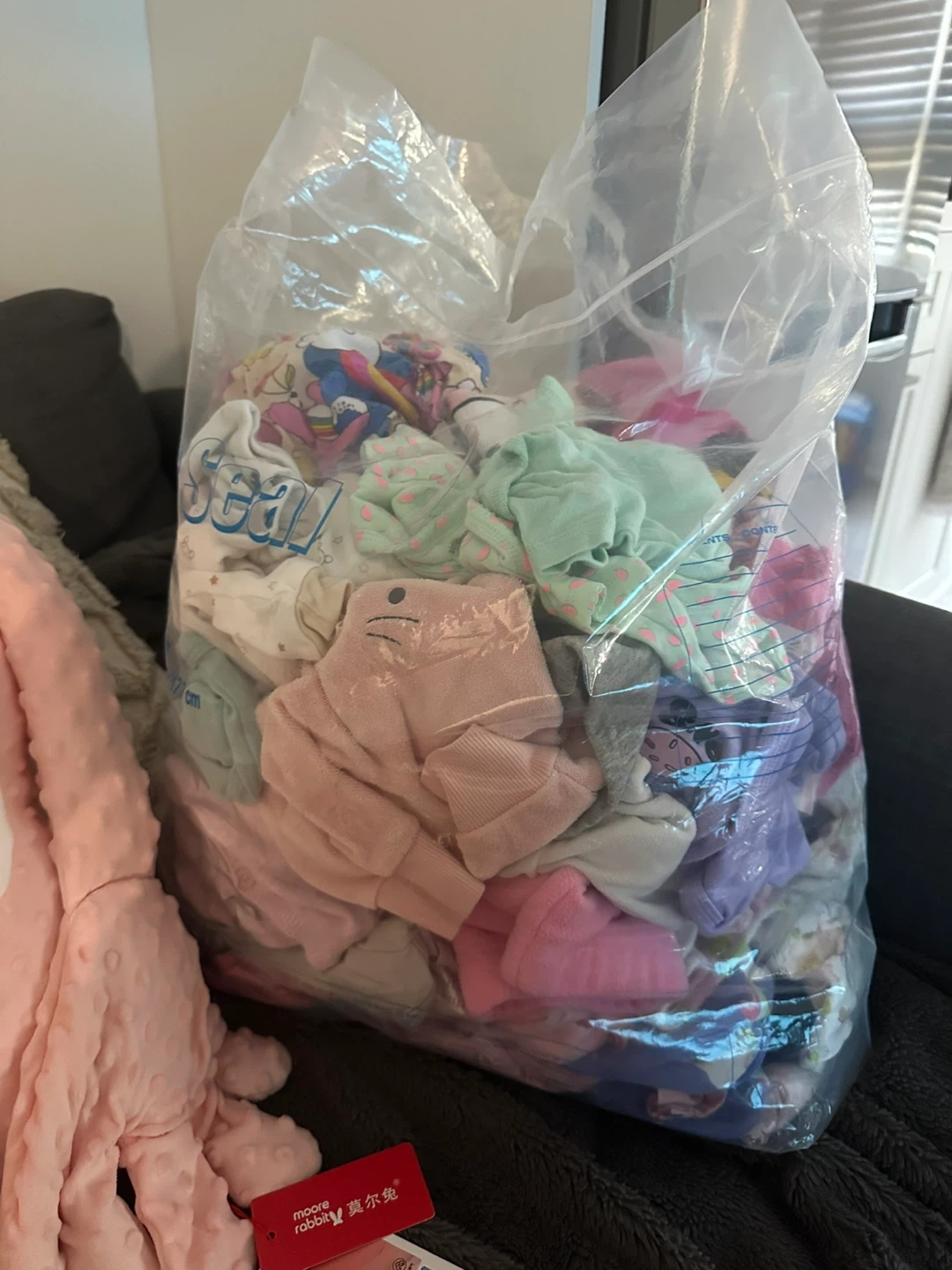 Bag of baby clothes, various sizes and colours mostly 0-3 months some with tags! Throwing in soothing stuffy