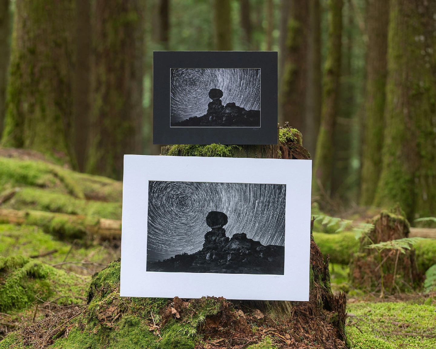 Balanced Rock Date: August 2017 Location: Arches National Park, Utah, USA Balanced Rock stands unmoved as the sky swirls above. 40 minutes of starlight and stillness. Edited in comet style to emphasize the counterclockwise motion of the stars. I am the artist/photographer. 12x16 Black or White Mat $100 12x16 Double Black Mat $135 18x24 White Mat $190 20x30 Canvas - $450 Comes with FREE 12x16 fine art matted prints of your choice. Value $100. you will be able to choose from lots of aurora, landscape, animals or flora photos. Payment cash or debit/credit.