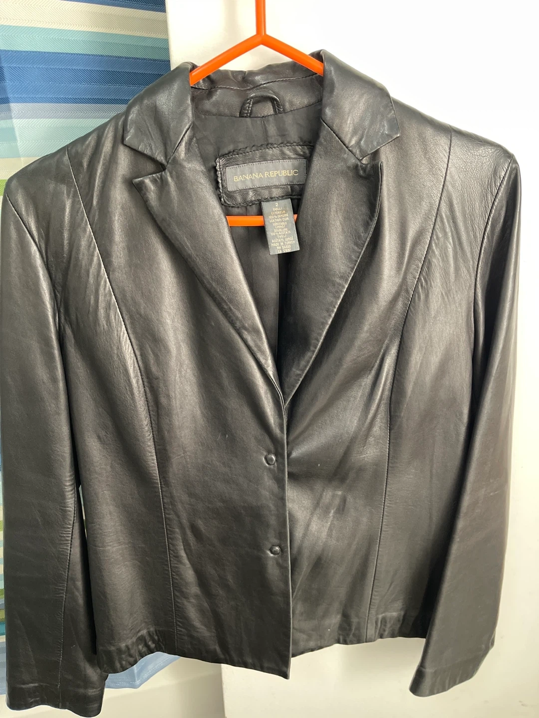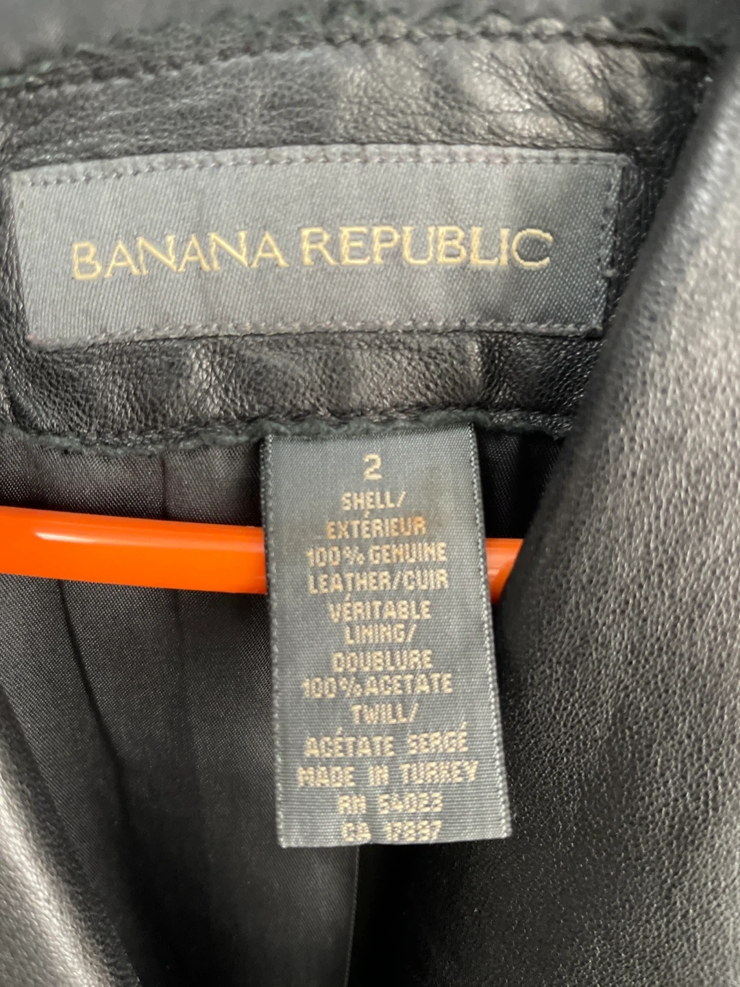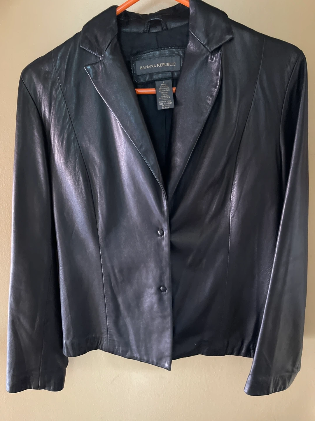 Selling a Banana Republic leather blazer in size 2. It's made of 100% genuine leather with 100% acetate twill lining. A stylish addition to any wardrobe!