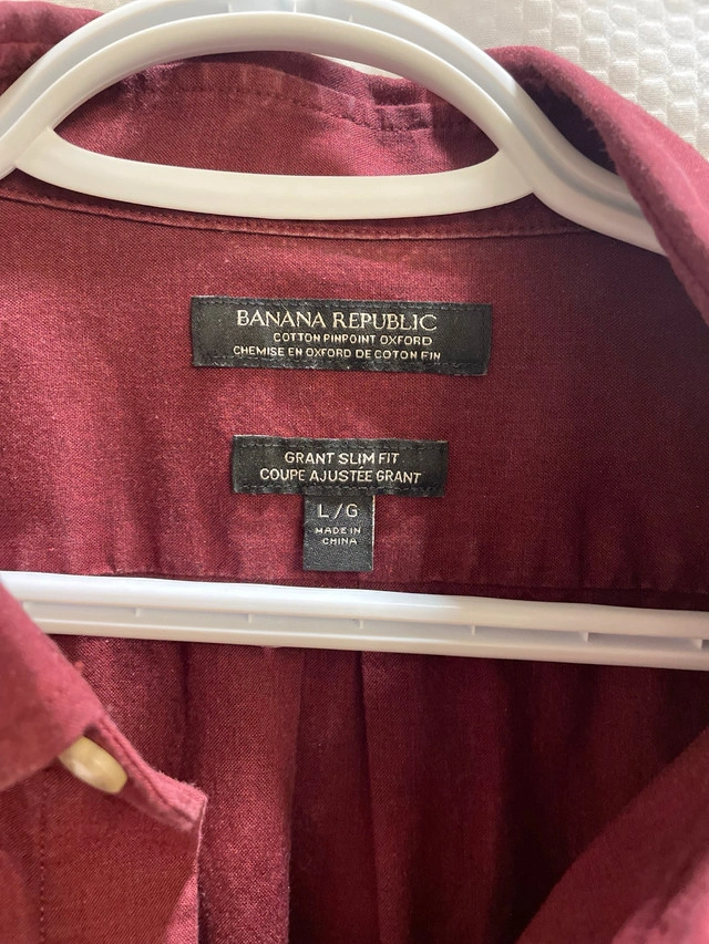 This Brand New Banana Republic Cotton Pinpoint Oxford shirt, in size large, features a Grant Slim Fit and is made of comfortable cotton material. Specifics: * Brand: Banana Republic * Style: Oxford * Fit: Grant Slim Fit * Size: Large * Material: Cotton