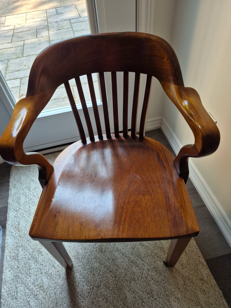 Selling a wooden armchair in good condition. It has a classic design with a sturdy build. Perfect for adding a touch of elegance to any room!I have 2 @ 30$ each.