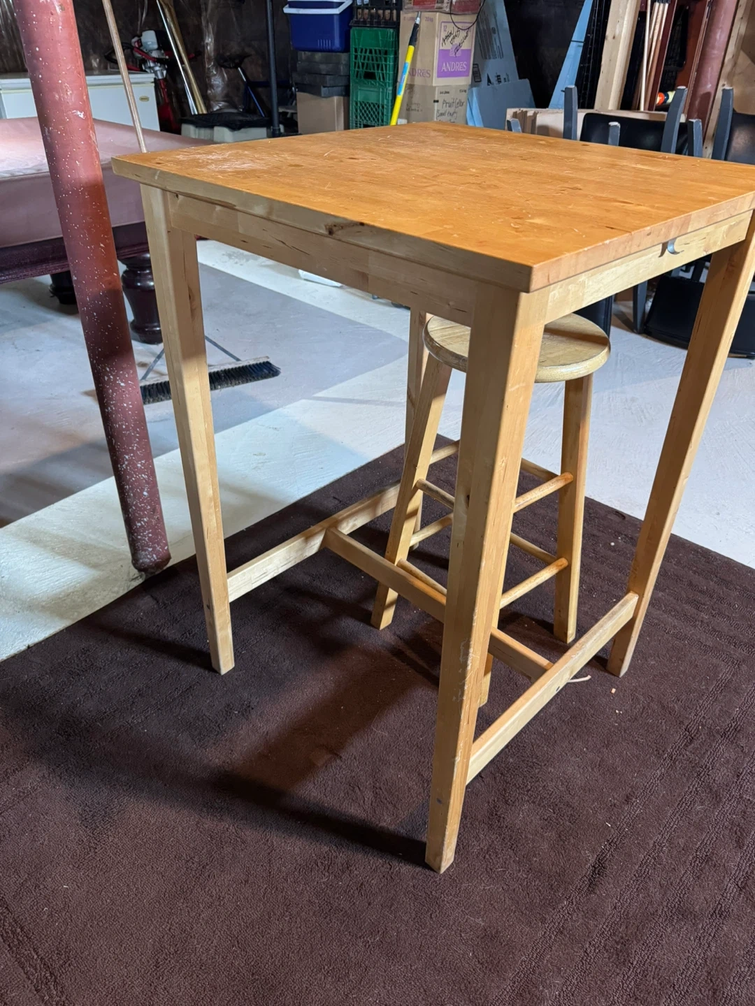 Selling a bar table with a matching stool. Perfect for a small dining area or kitchen! The set is in good condition and ready for a new home. It's a great space-saving solution and adds a touch of modern style to any room28x28x40H