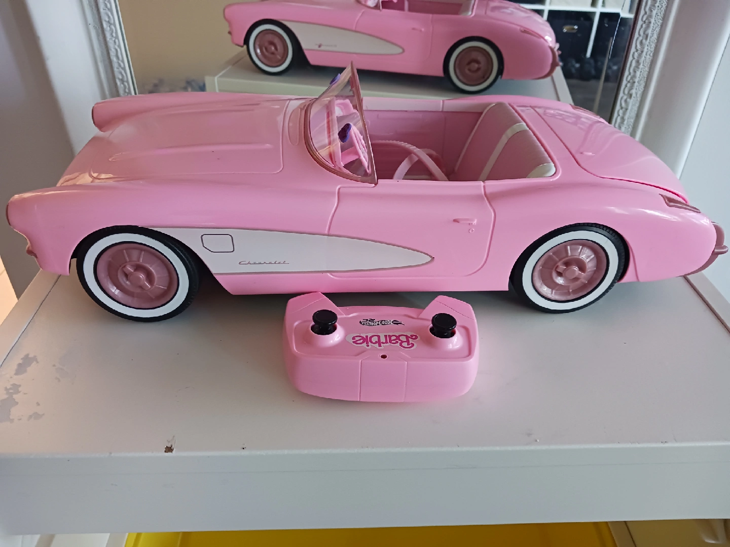 Selling a Barbie Hot Wheels Corvette RC car in pink! It comes with a remote control. It has some signs of use, as pictured.needs new batteries.