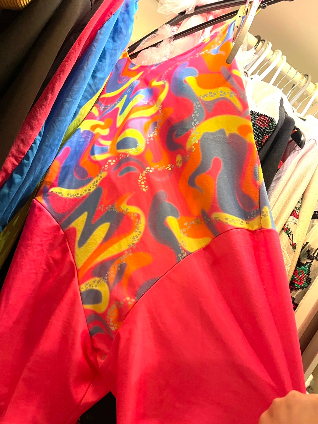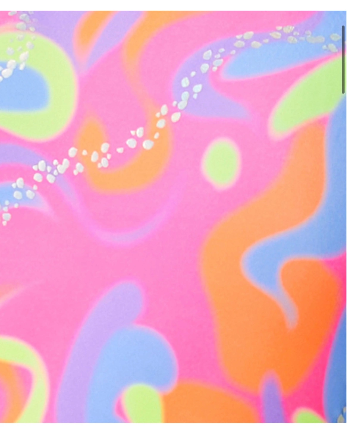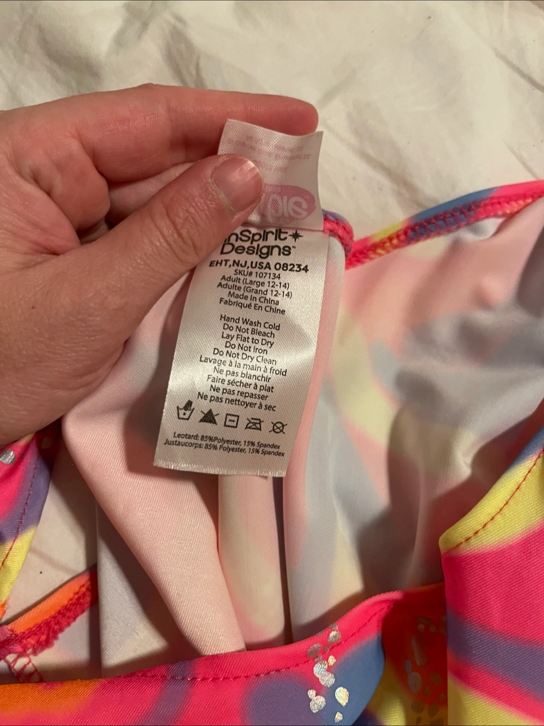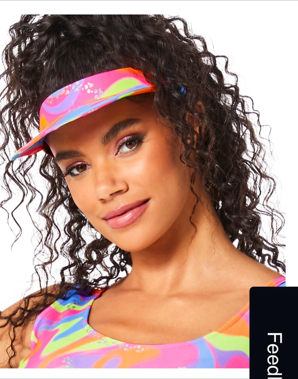 Get ready to roll with this fun Barbie rollerblade costume! The set includes a colourful leotard, visor, elbow pads, and knee pads. The leotard is made of 85% polyester and 15% spandex. Perfect for a themed party or Halloween! Only used once, size L