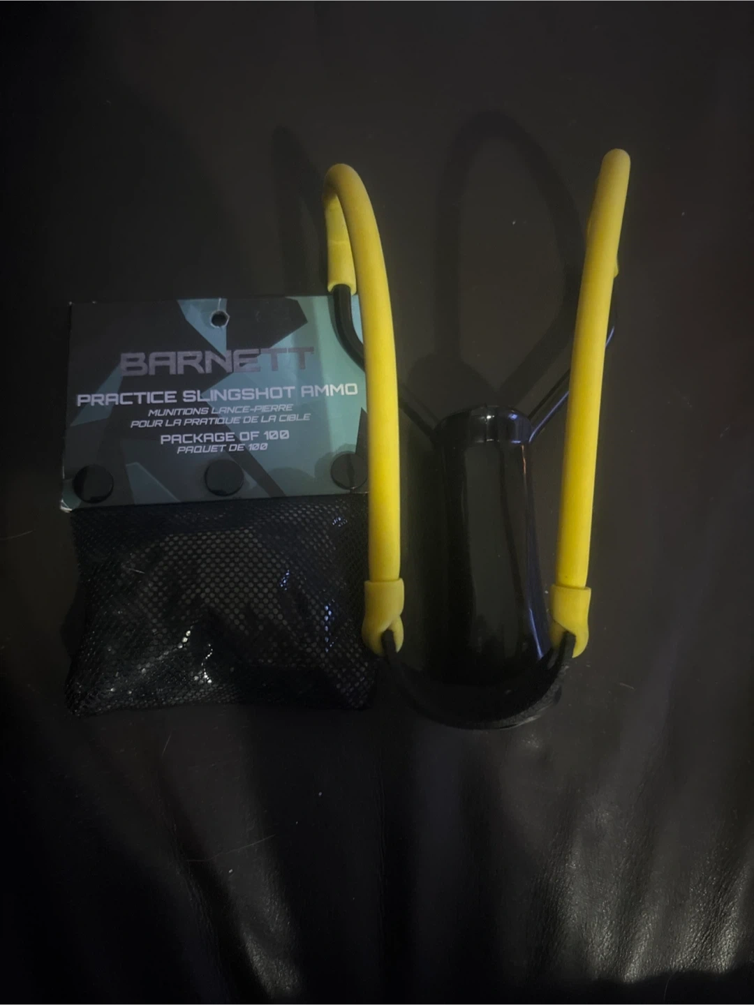 Selling a Barnett practice slingshot with ammo. The ammo comes in a package of 100. Great for some outdoor fun!