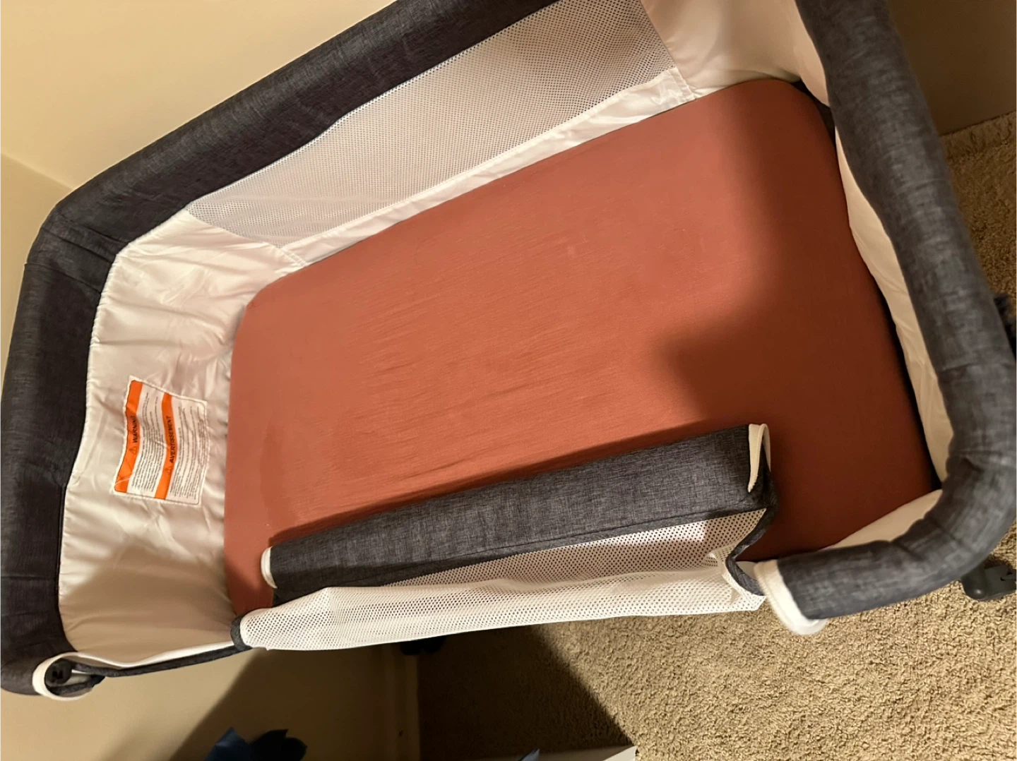 Selling a bassinet in great condition. It has a grey trim and can adjusted along with bedside.Perfect for a newborn!