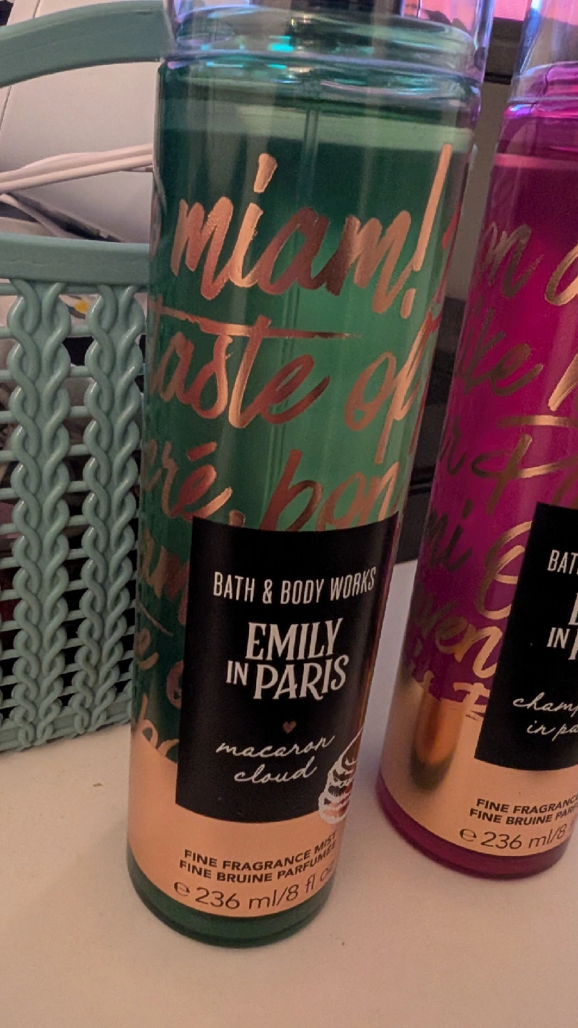 Selling two Bath & Body Works Fine Fragrance Mists from the Emily in Paris collection! One is 'Macaron Cloud' and the other is 'Champagne in Paris' The size of each bottle is 236 ml/8 fl oz Been used. 5$ per each