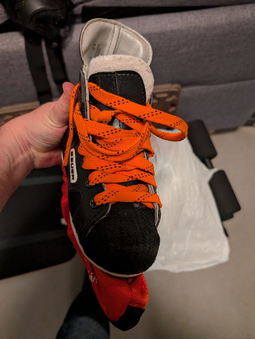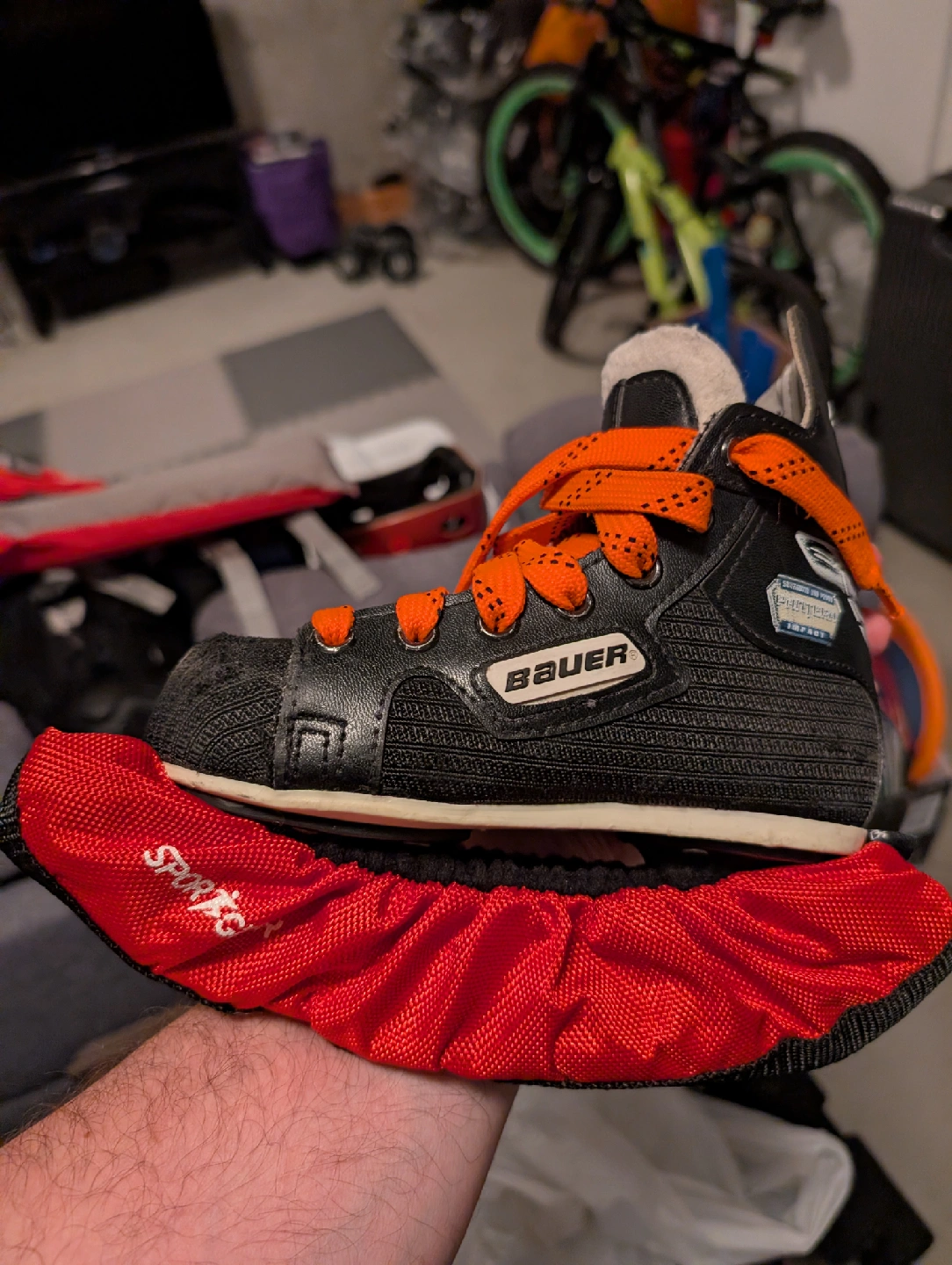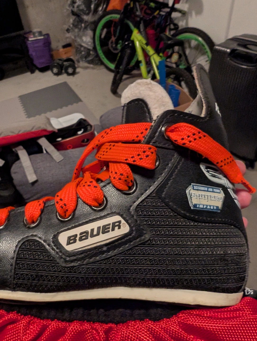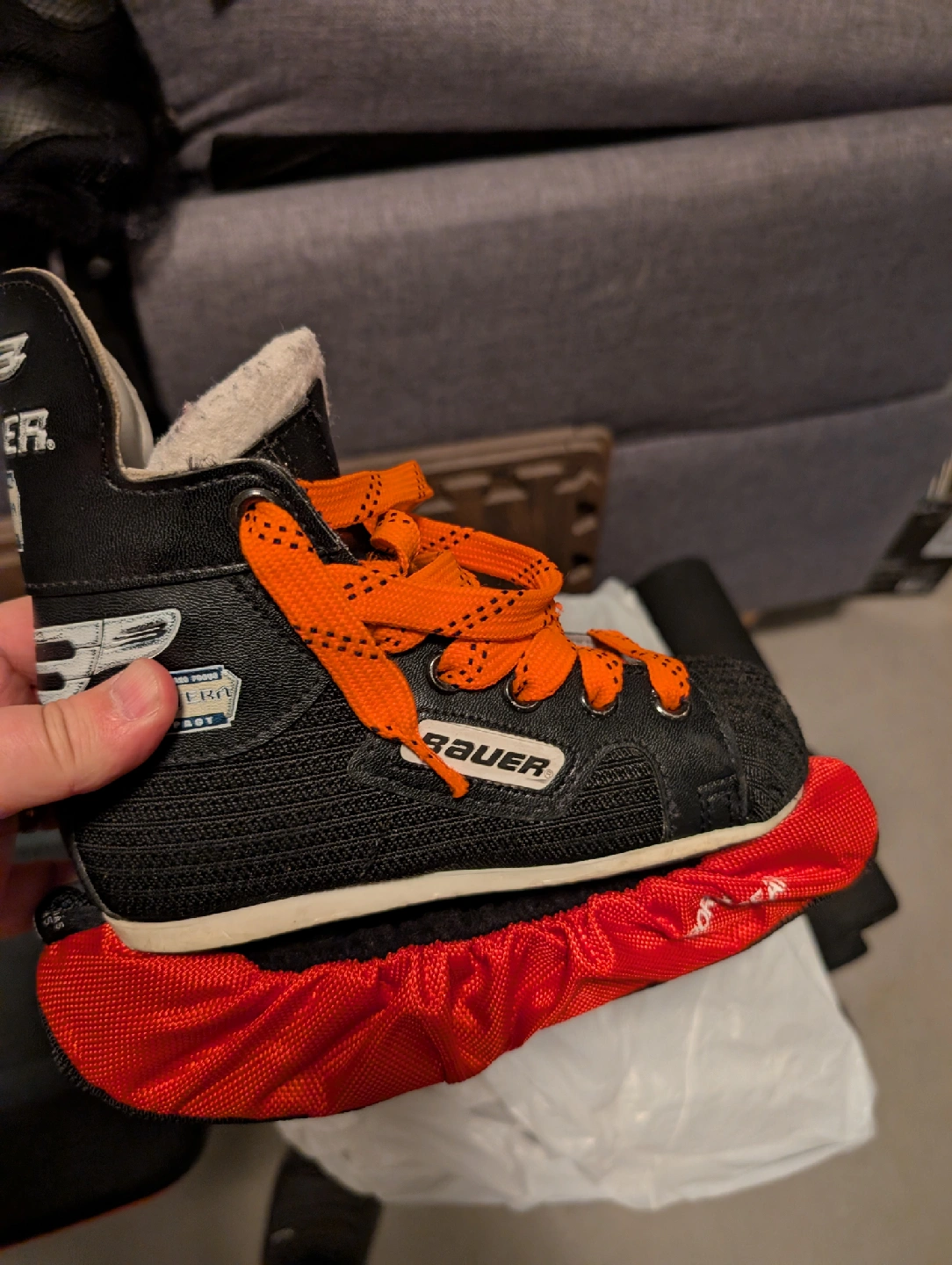 Selling a pair of Bauer Lil Champ youth hockey skates. They are a size 9 and come with red skate guards. Perfect for getting your little one started on the ice!