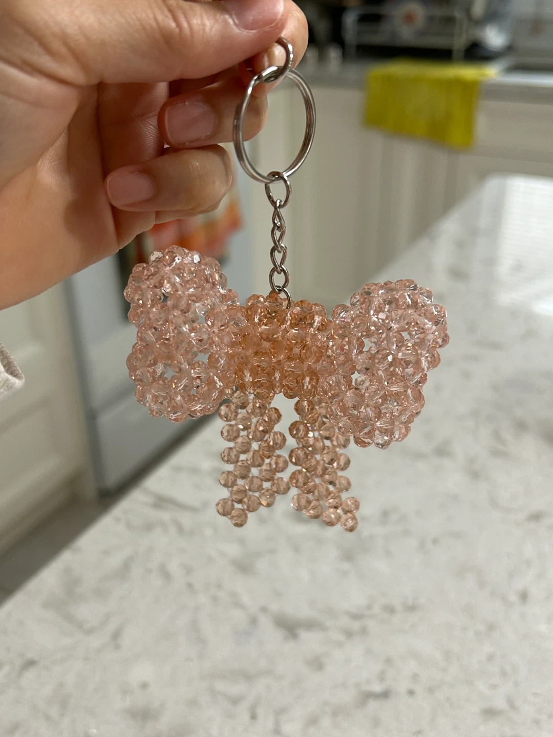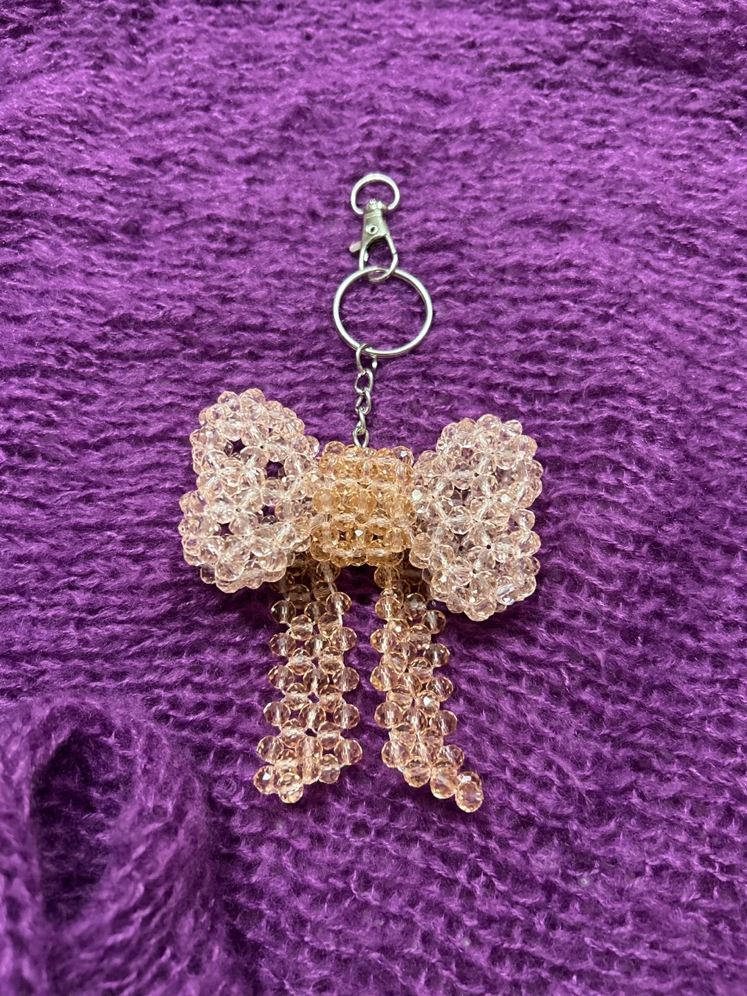 A cute beaded bow keychain! It's in great condition and ready to add a touch of charm to your keys or bag you can customize your colour too.