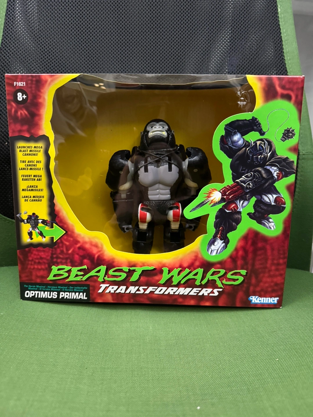Selling a brand new, in-box Beast Wars Optimus Primal Transformers figure! This Kenner toy features Optimus Primal in his gorilla form and includes the mega blast missile cannons. Suitable for ages 8+