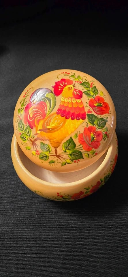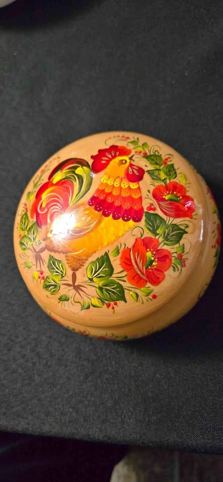 Beautiful hand painted wooden trinket box with a colorful rooster and edged with gorgeous flowers. Pickup Northside port coquitlam