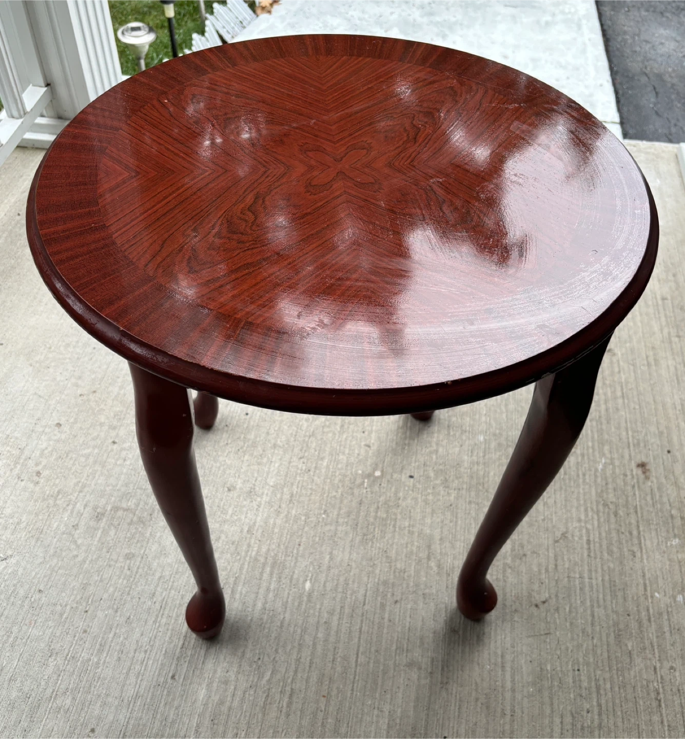 Beautiful Round Wooden Side Table - Mahogany Finish (20”H, 20”D)