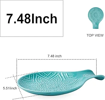 Given as a gift. Never got around to using. Out of packaging Wide and fan fit a couple spoons at a time while cooking. High Quality Ceramic:This spoon rest made from durable ceramic, which makes the products durable and long-lasting. Durable ceramic ensure heat resistant and dishwasher safe. Spoon Rest in your kitchen: The spoon creates the perfect place for your cooking utensils, prevent messes in the kitchen, keep your countertops clean, making life in the kitchen easier. Elegance Counter Decorative: Flower pattern taking on a graceful design, and it is stackable, which can be placed on your counter or stovetop as a beautiful, minimalist accent piece. Large Size: The diameter of the spoon rest is 7.48 inch. The design is roomy enough to fit most kitchen utensils, it is practical and convenient. Bowl shape design can be keep drips and splashes off your countertops.