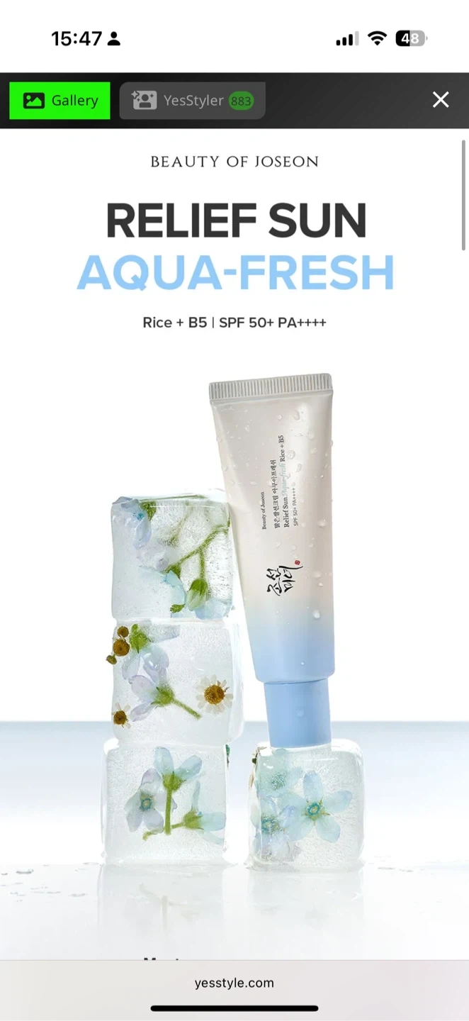Amazing South Korean brand , one of the best sunscreens! Beauty of Joseon Relief Sun Aqua Rice + B5 sunscreen. It's SPF50+ PA++++ and comes in its original SEALED box. It's a lightweight sunscreen that feels great on the skin no white cast. Expiry date is 2027 August 11 I have 6 pieces available. $10 EACH non negotiable price.