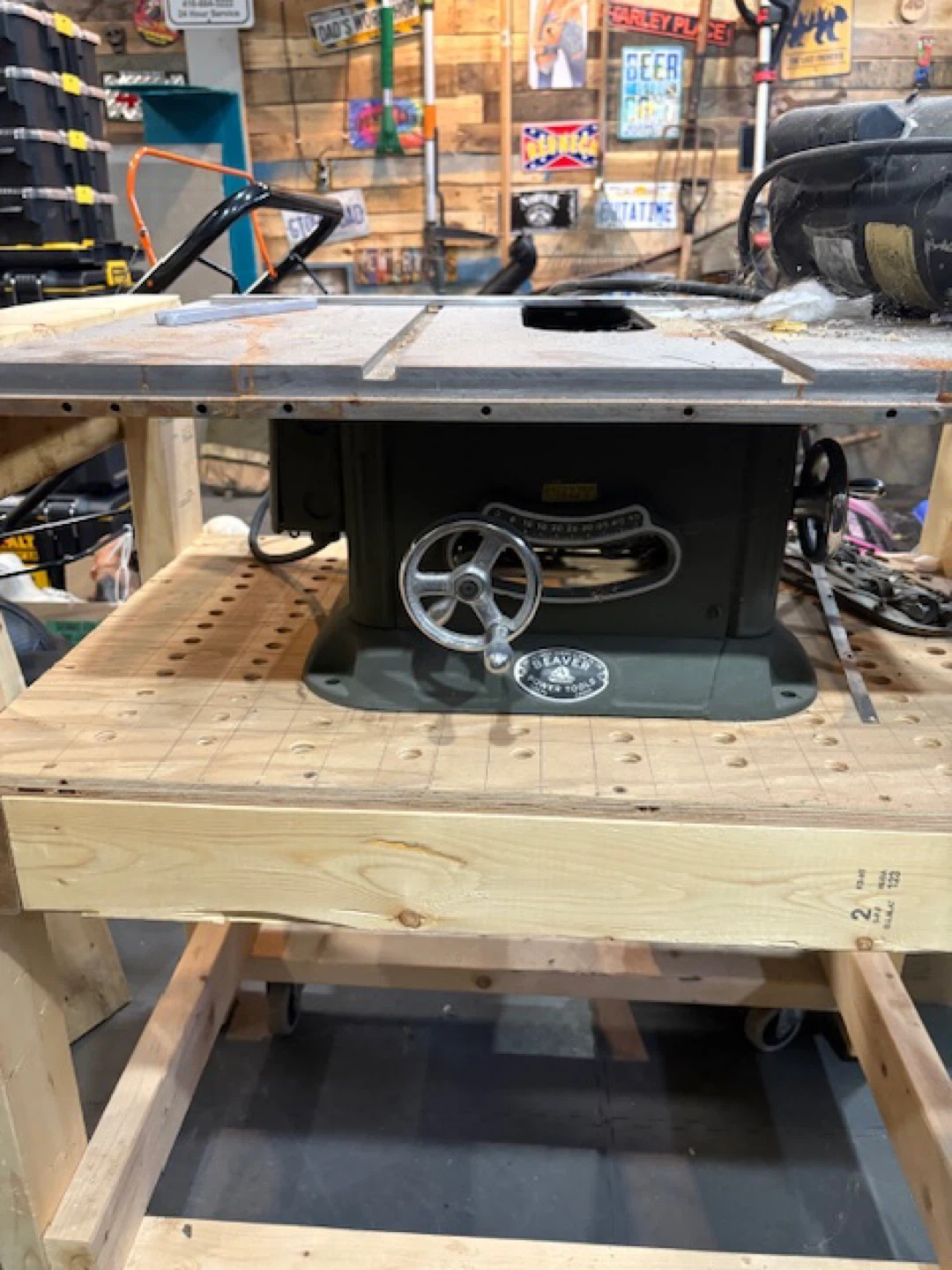 Selling a Beaver Power Tools table saw, model 2200. It's a sturdy piece of equipment ready for your woodworking projects. A reliable tool for any workshop!