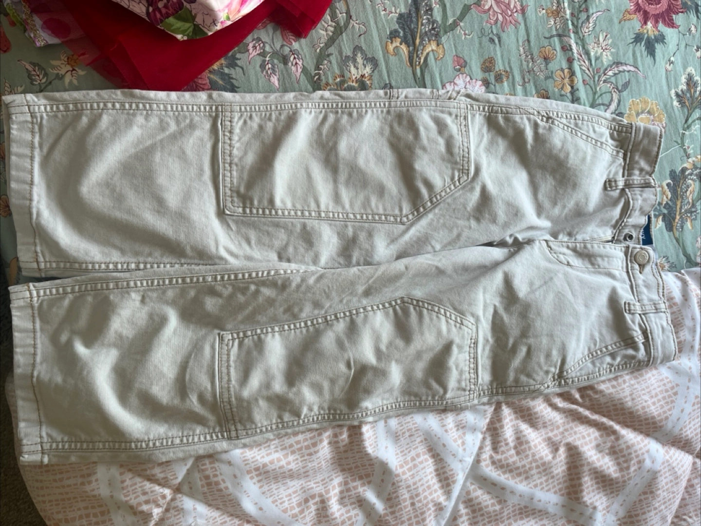 Here are some beige carpenter pants! They're in great condition and ready for a new home. The material is durable and the design is super practical with the extra pockets. They're perfect for everyday wear or for getting some work done