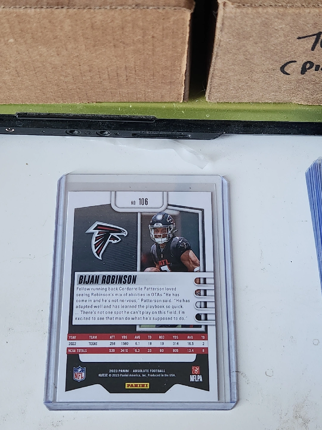 Selling a Bijan Robinson rookie card from Absolute Football! It's in great condition and ready for a new home. Perfect for any football card collector