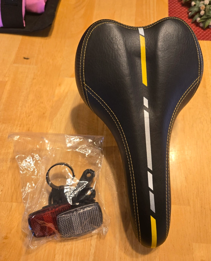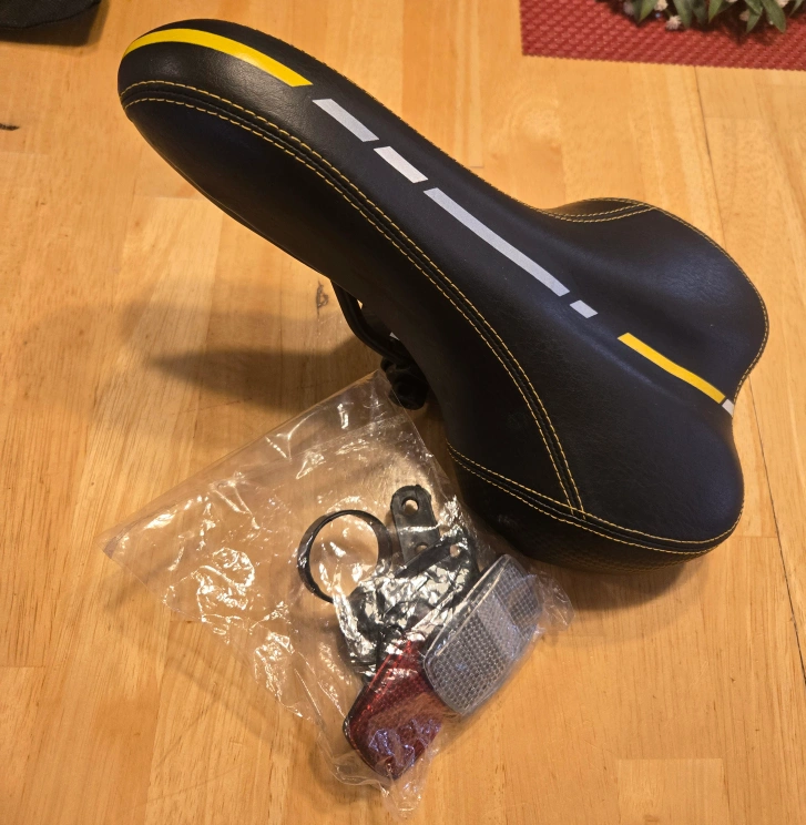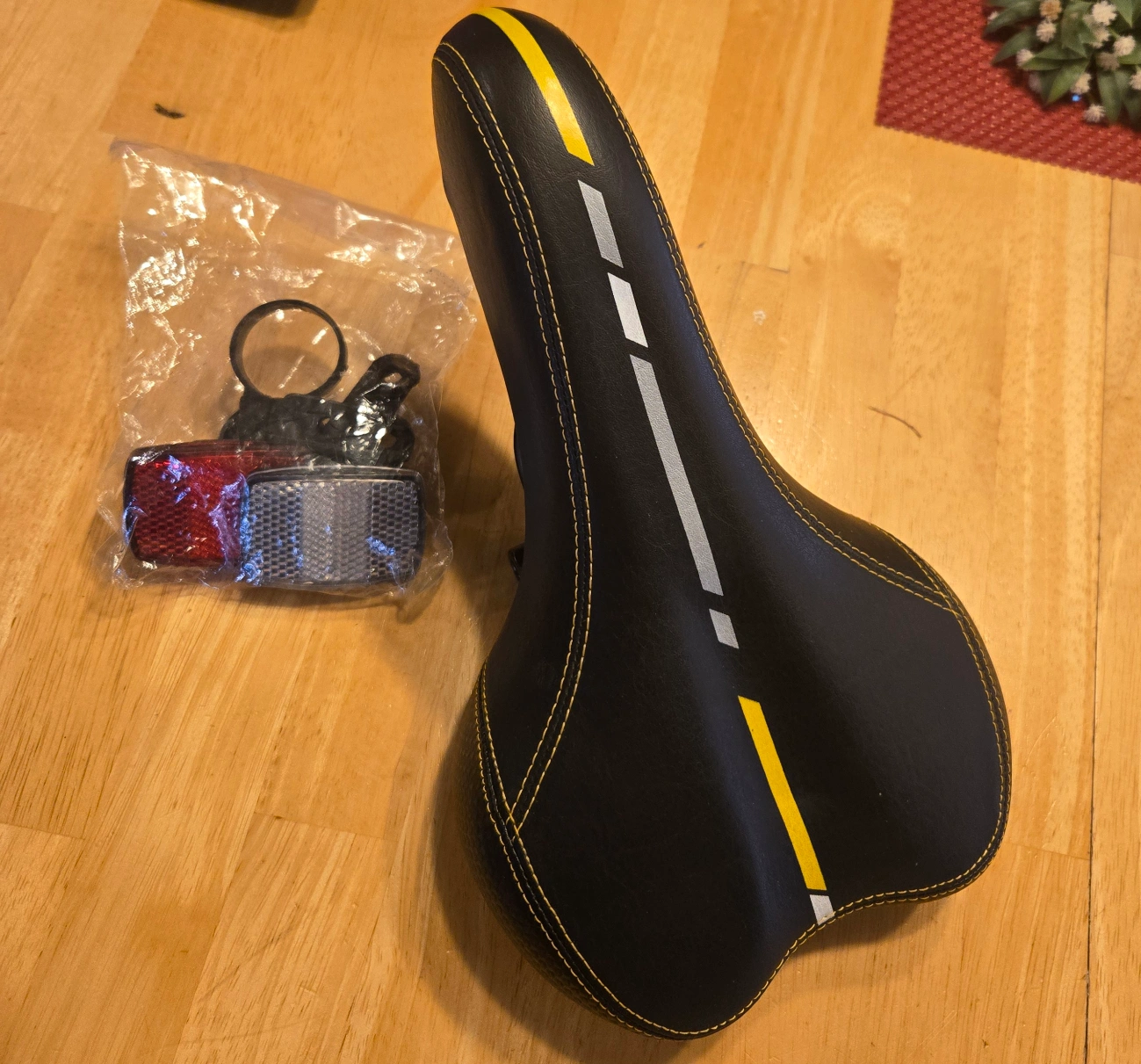 Selling a comfortable bike seat in black. It comes with a reflector and mounting hardware still in the original packaging. Perfect for upgrading your ride!pick up NECH