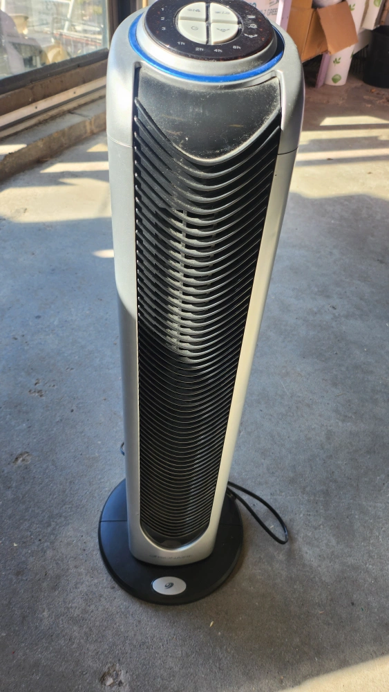 Keep cool this summer with a Bionaire tower fan! This model is the BT3813BS-CN and it's perfect for circulating air in any room. It uses only 36W of power and has a thermal protection feature for safety. It's in good working condition and ready to help you beat the heat