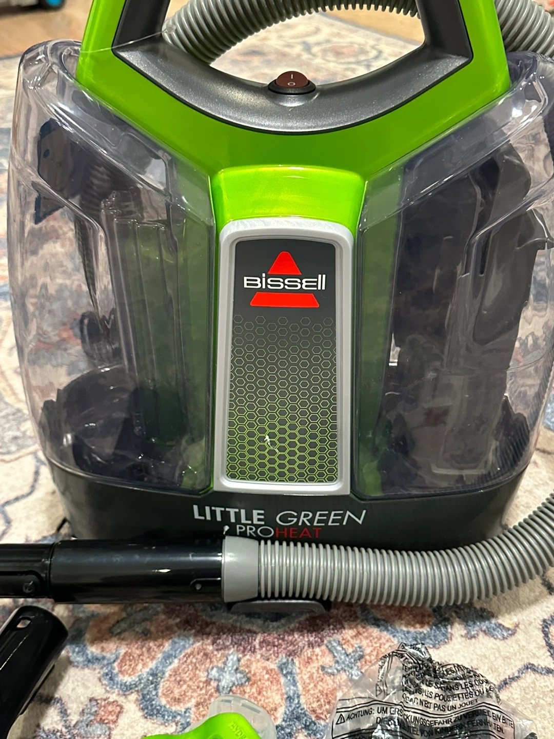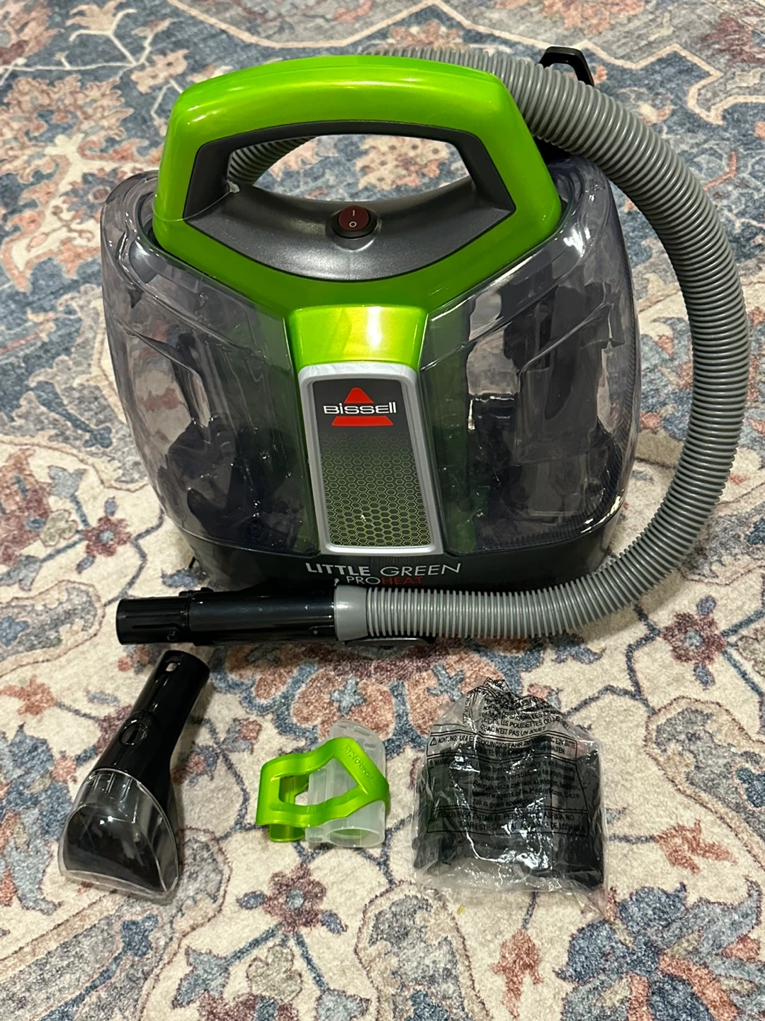 New open box Selling a Bissell Little Green ProHeat portable carpet cleaner! It's great for cleaning up messes on carpets and upholstery. The Heatwave Technology helps to loosen and remove tough stains with its powerful suction. Comes with attachments!